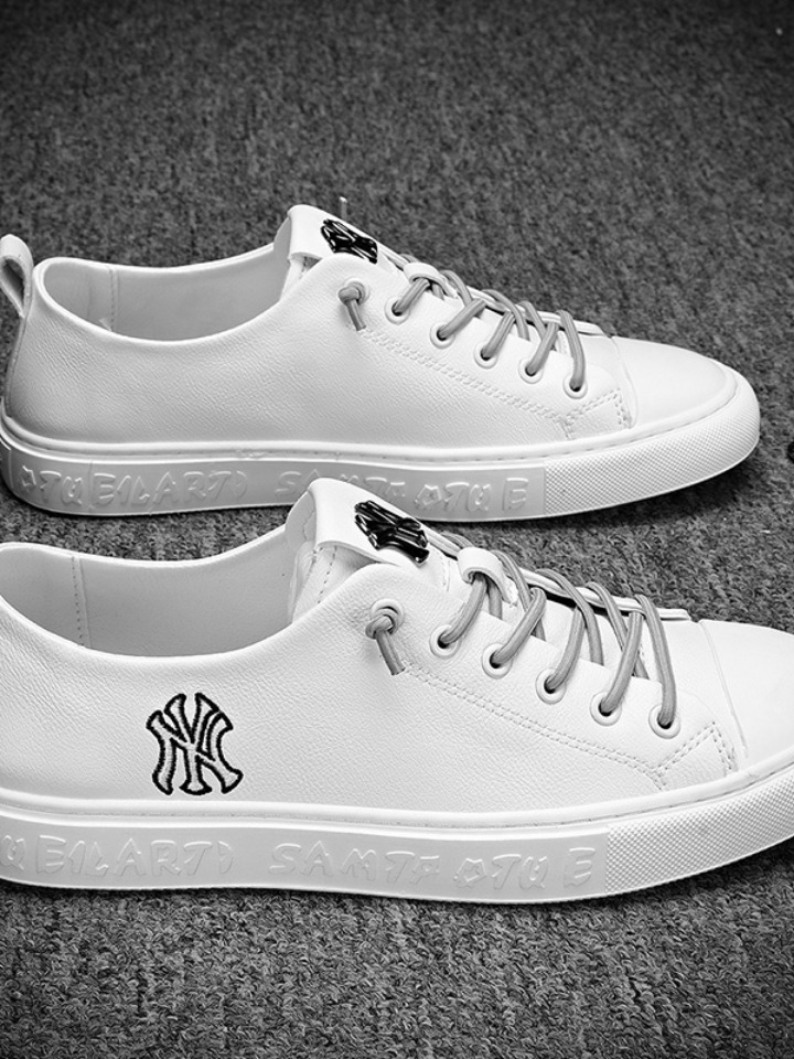 这款小白鞋,属于一脚蹬的款式,穿脱都非常便利,鞋底上的一层棕色条纹设计的非常巧妙有亮点,让人第一眼看了就想要拥有。