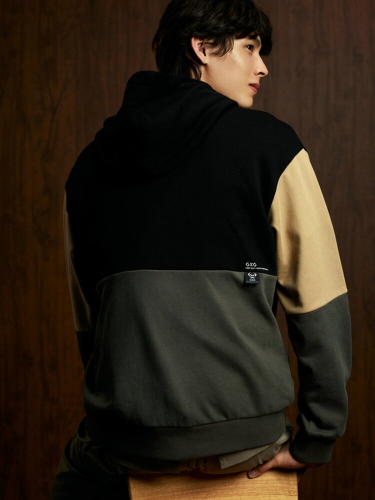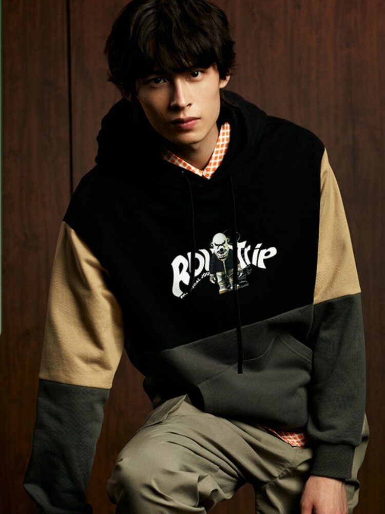 撞色衣身的组合,让这款卫衣从外观上就很有时髦街头感。