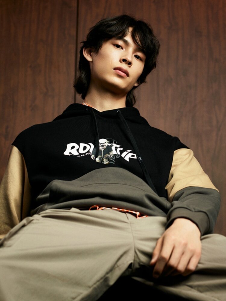 宽松连帽卫衣的版型设计,随便搭配都很有青春活力。