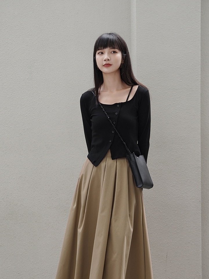 看似一件简单的开衫,但是采用的是滑肩中袖的设计,更加干脆洒脱,曲珠纱线针织的设计更加有垂感,里面搭配吊带或者是裙装都可以,轻软薄透的针织衫,微微显出妖娆的曲线,如果觉得热也可以系在腰间,飒爽的很。