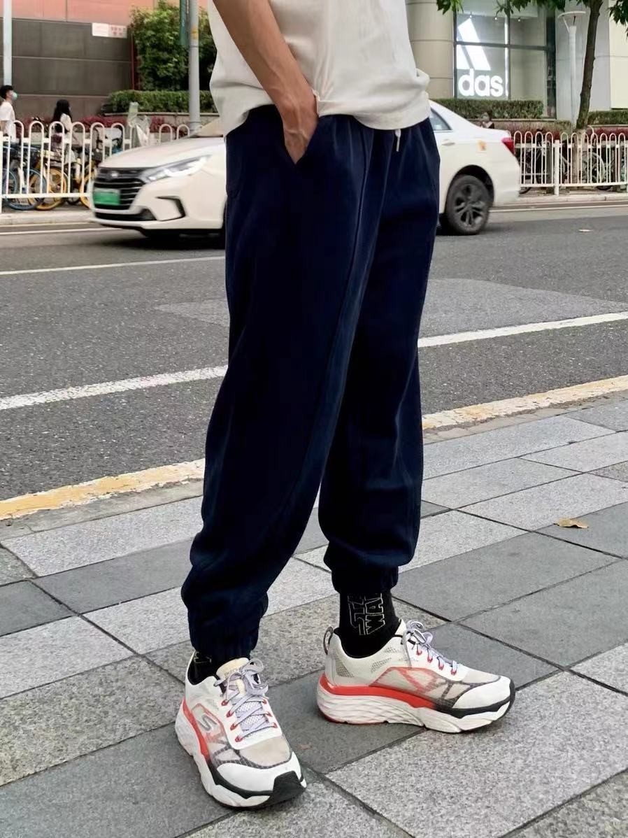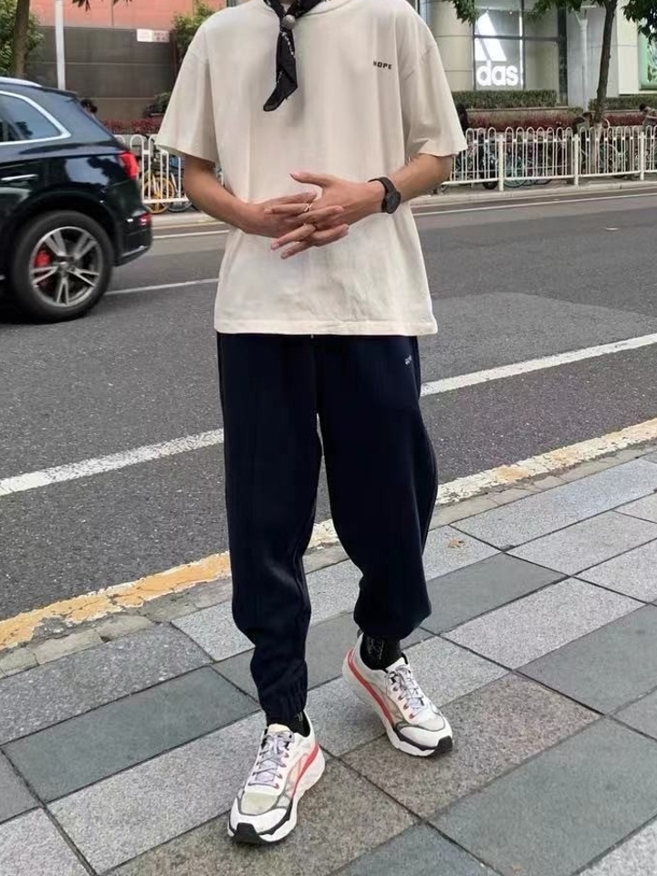 纯纯的色调,经典大气的版型,没有多余的装饰,束口小脚的设计,彰显出你的青春活力范,很好的修饰了你的腿部线条。