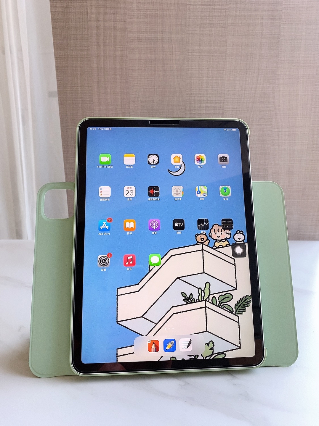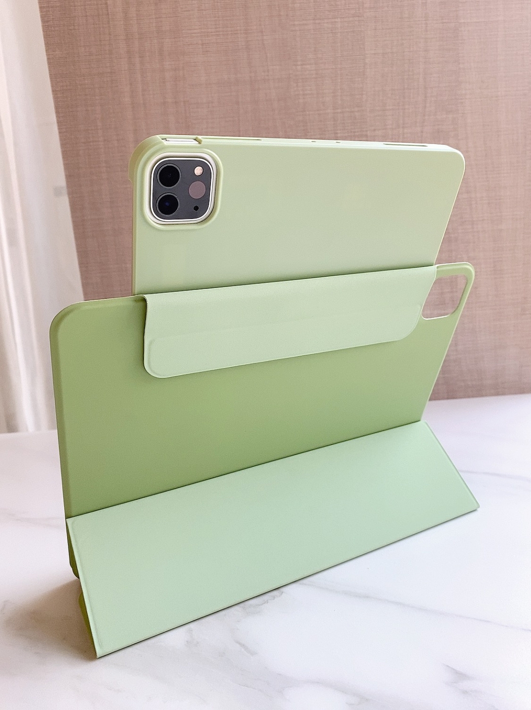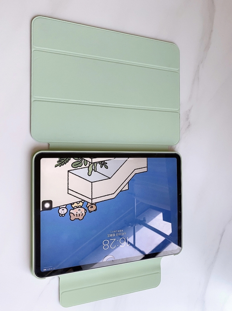 它是双面夹且不顶膜,所以iPad有了双重保护就十分安全。它是分体磁吸,可以横屏竖屏切换,有时候想用iPad看视频的时候就可以竖屏,省下了一笔支架费用;保护套面盖是三面折叠,有三种支架模式,写字看视频都可以随意切换很方便。若想更加轻便,也可以直接摘掉保护壳。