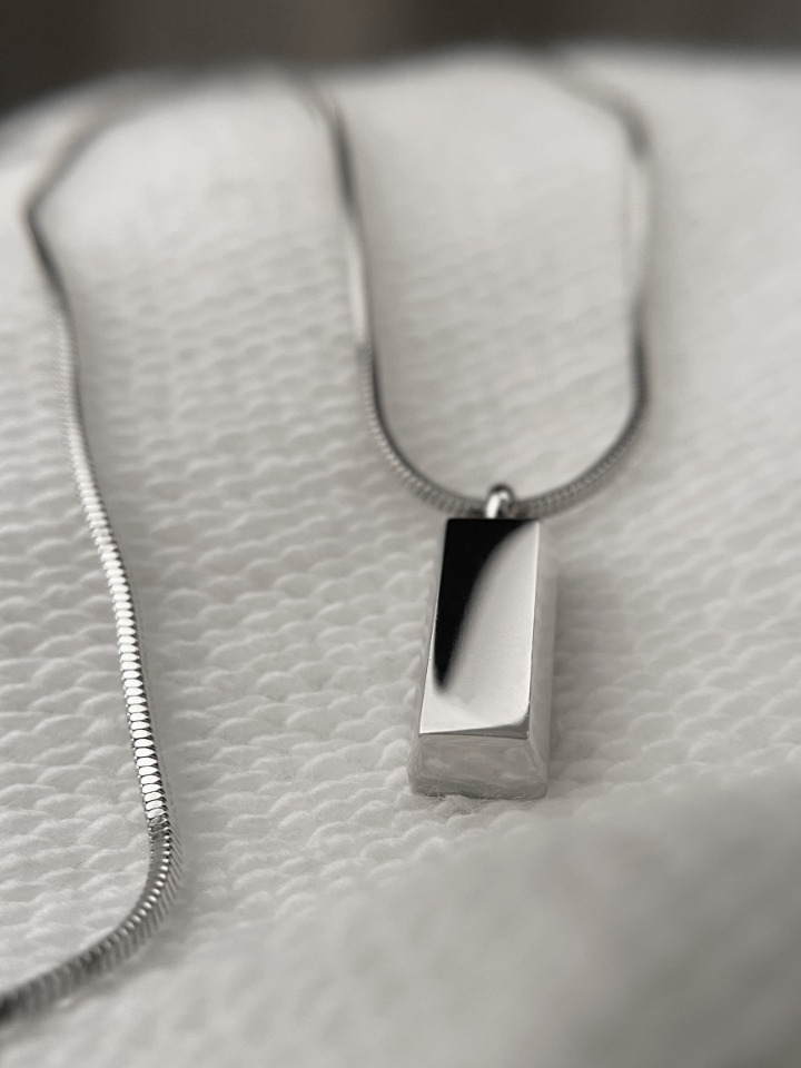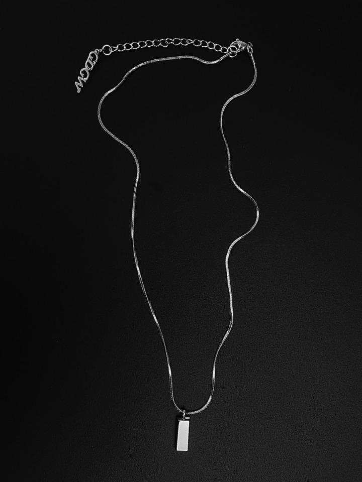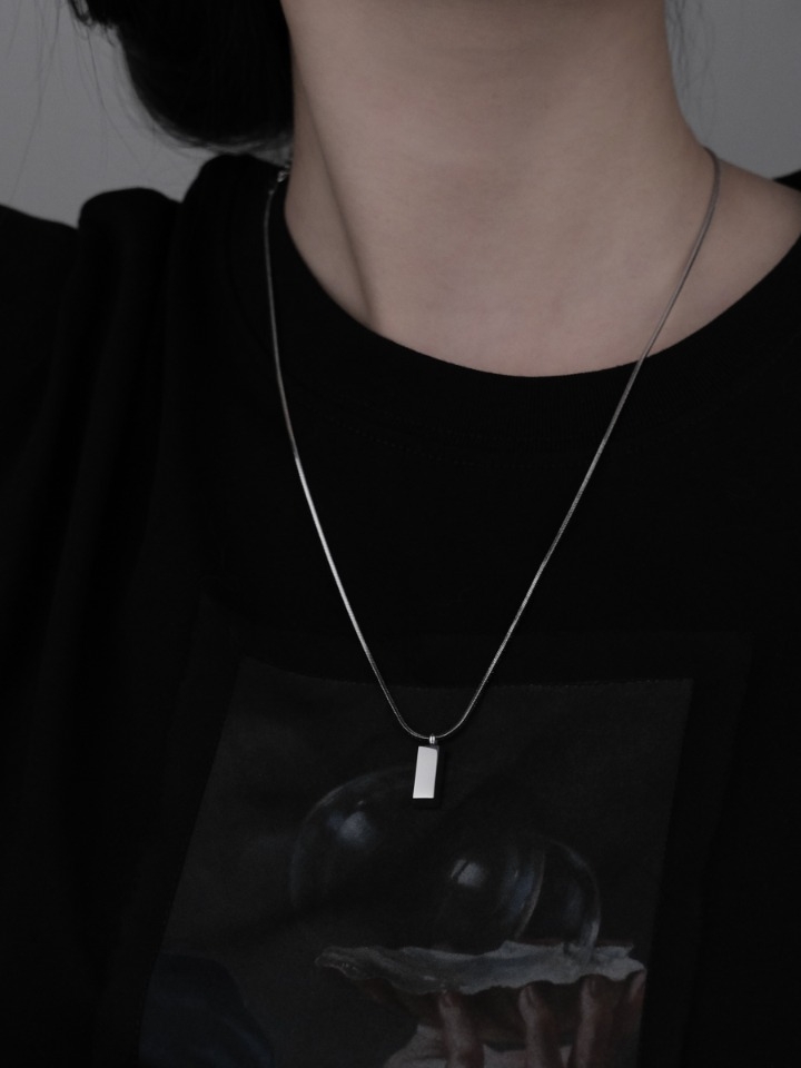 带有小颗吊坠装饰的一款项链,整体采用钛钢金属材质制成,亮点十足,很有街头的风范,镂空的链条设计也更具个性。