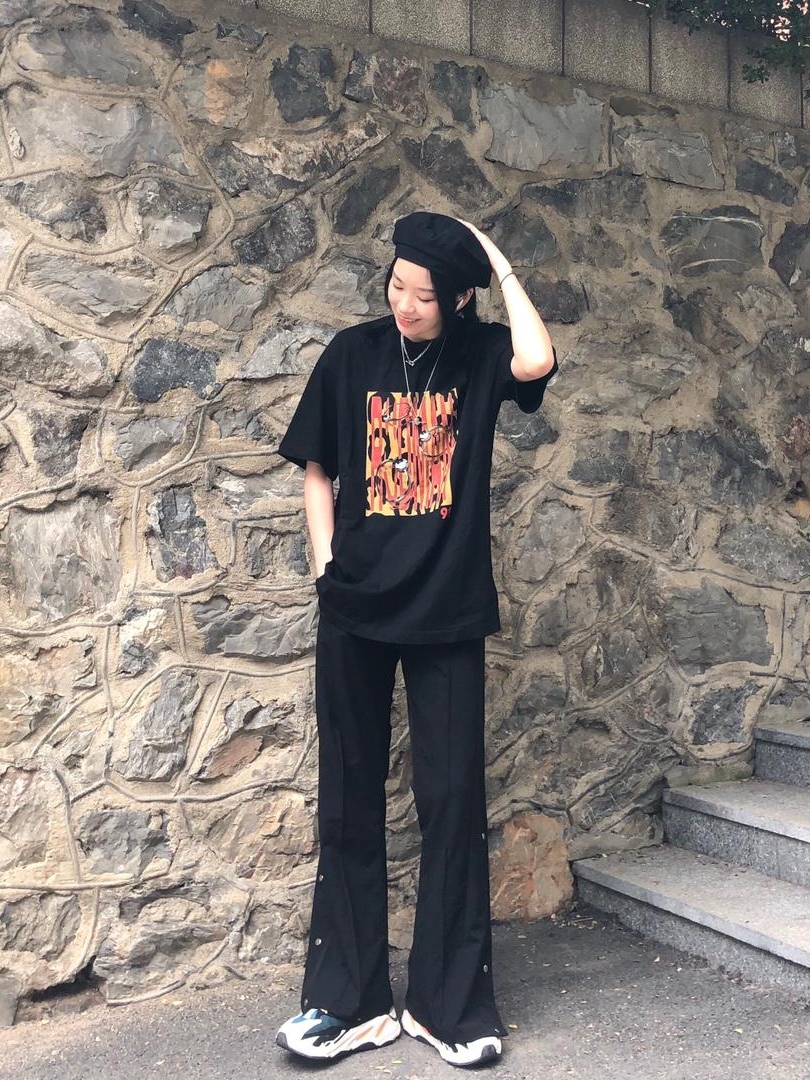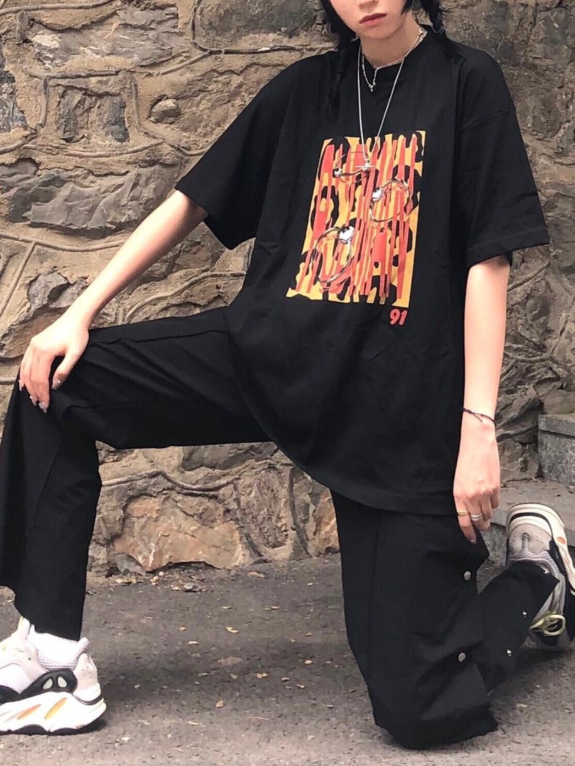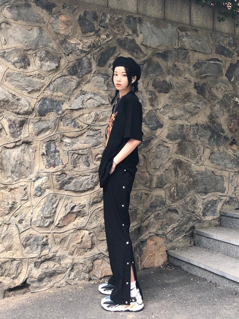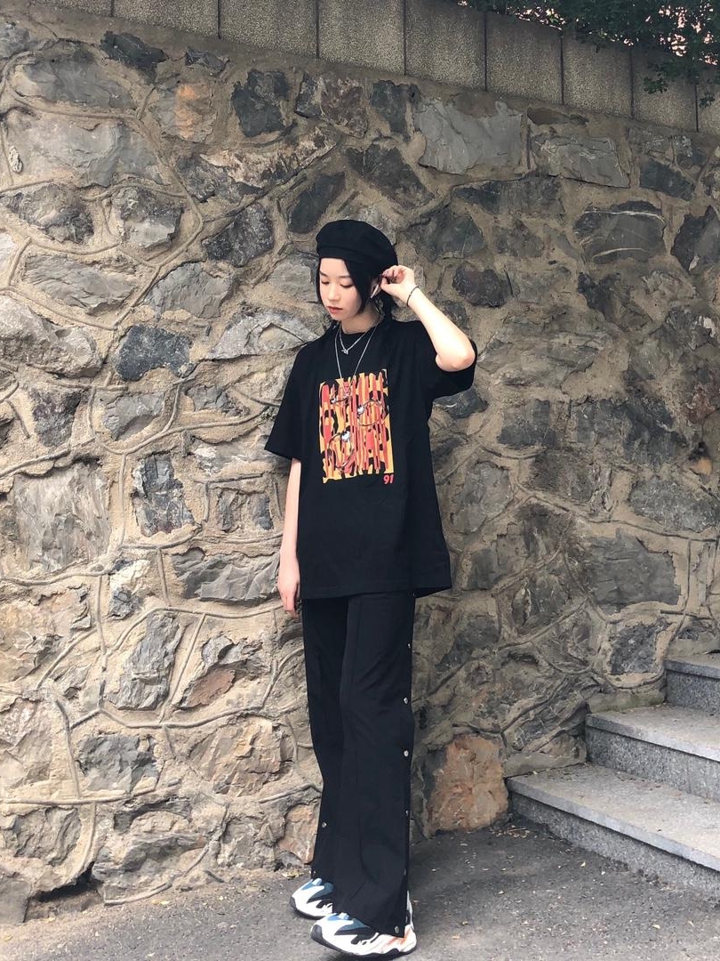 这款t恤是简约的风格,宽松的版型,时尚百搭,胸前的字母印花,很有个性,搭配牛仔裤或者短裤都很好看。