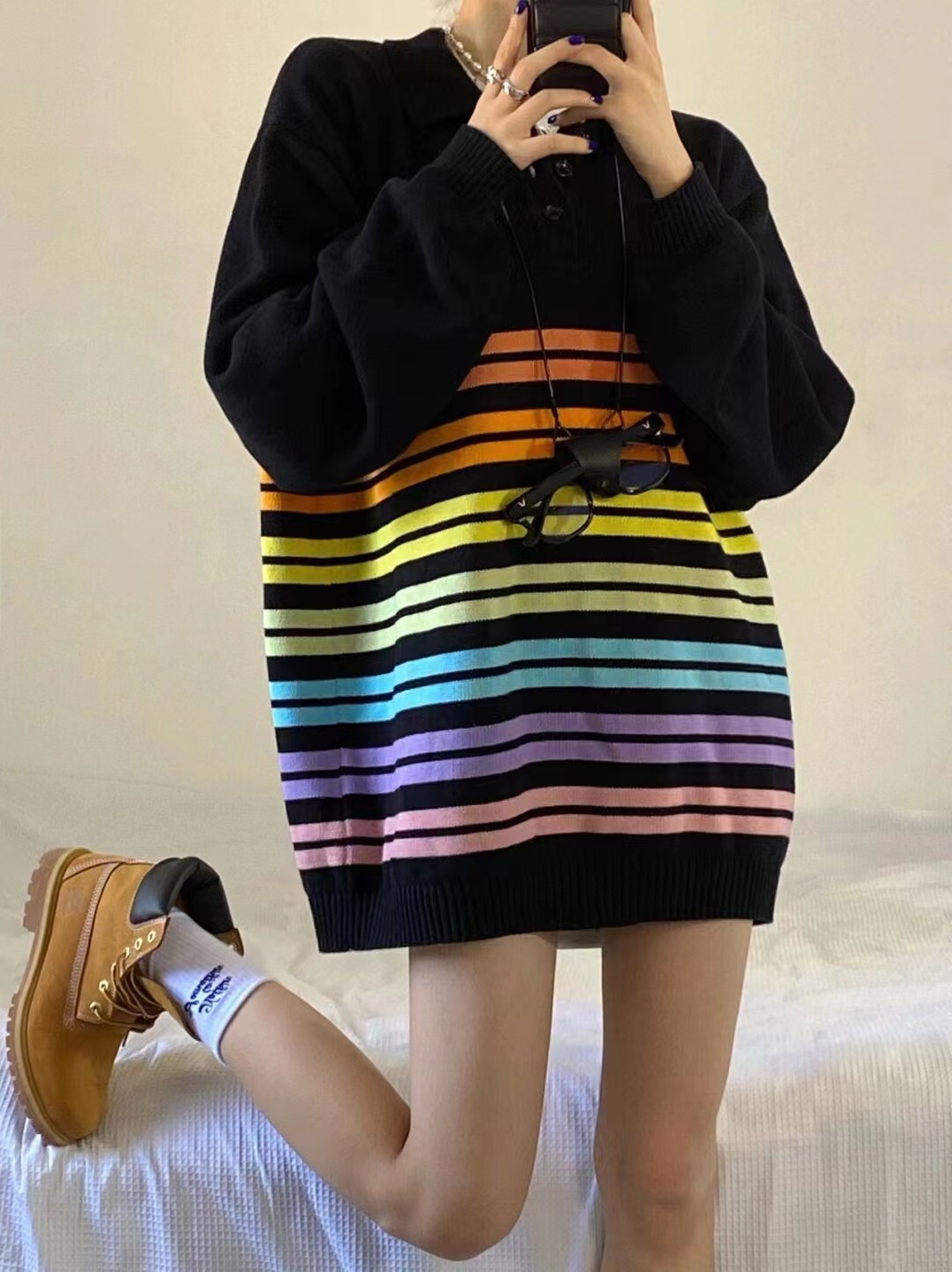 五颜六色的黑毛衣!polo毛衣还蛮少年感的!男生穿也贼拉好看那种,质感满分而且贼显瘦!!!