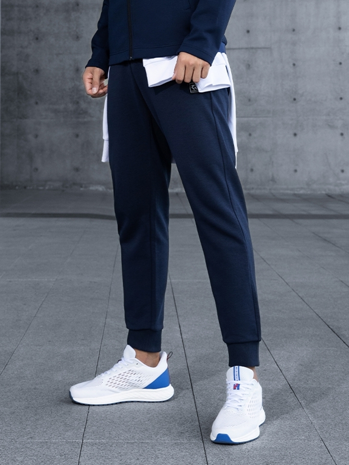 裤腰用了松紧加系带的方式,可自由根据自身情况做调节;裤腿有logo,精致美观,双侧设有口袋,实用方便,收腿设计,符合运动习惯。
