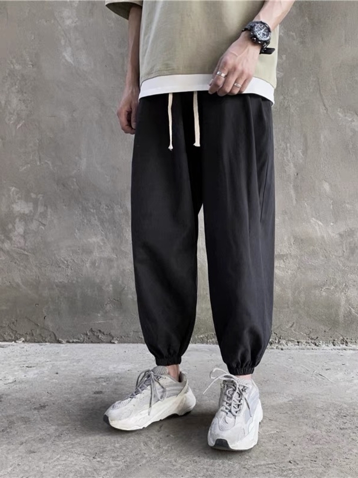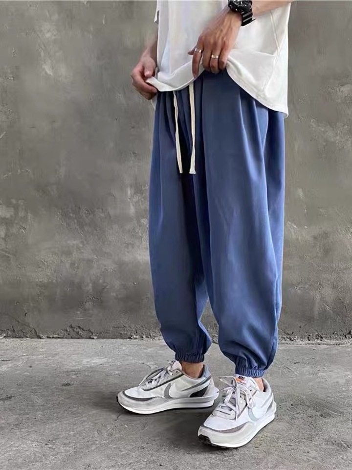 束脚裤是当下流行的一款裤装,这款的裤子臀部设计宽松,与裤脚形成的对比,锥形的裤型,穿着起来不仅舒适,同时也能很好地修饰腿型。