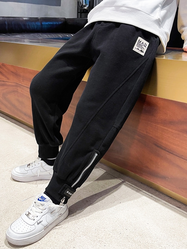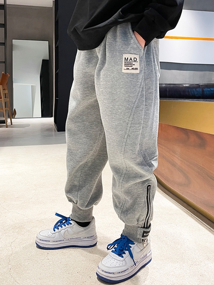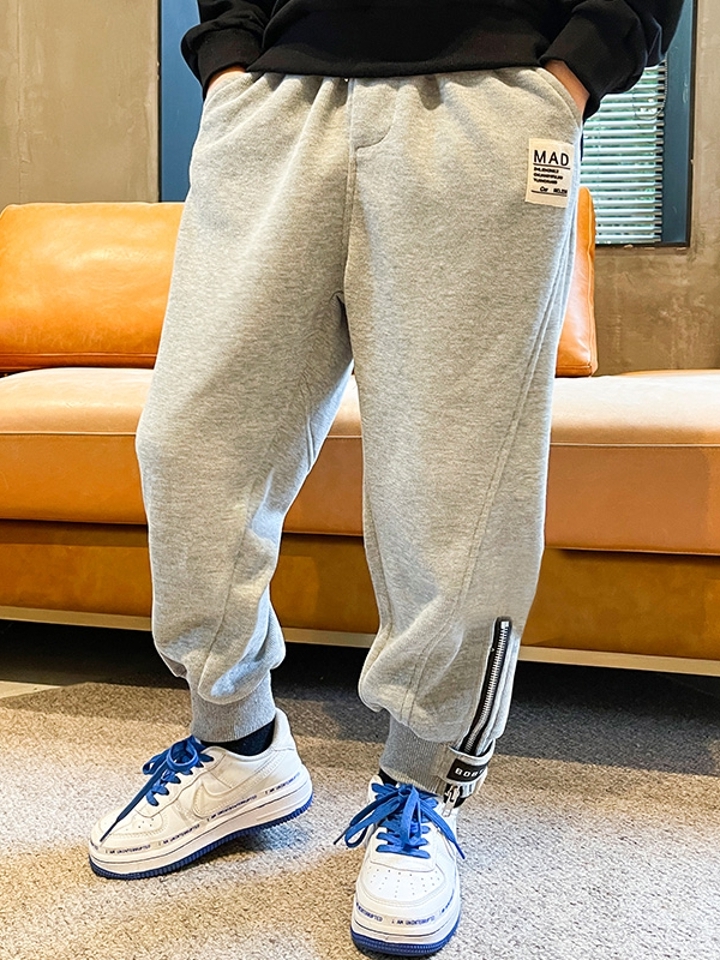 这是一款适合男童宝宝穿的秋季全棉运动裤。这款运动裤为休闲风设计,皮筋腰带设计,可以任意松紧,方便宝宝活动。此外,棉混纺布的面料材质不起球,不掉色,做工精致,无线头。