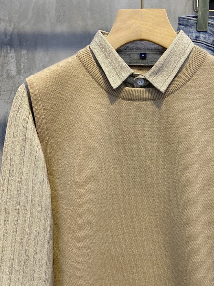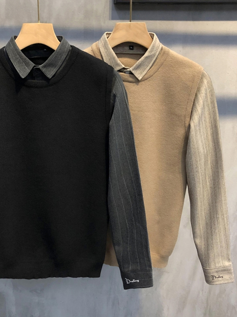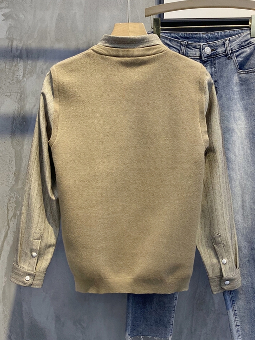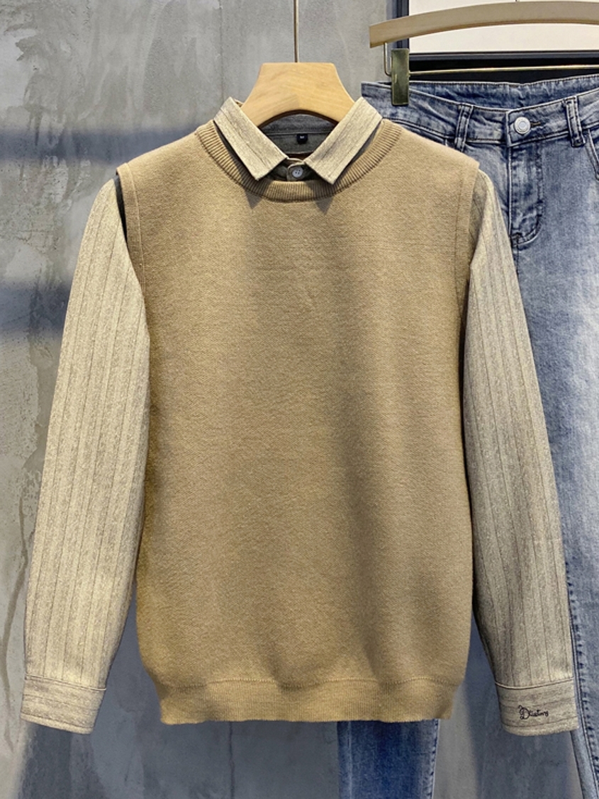 早晚温差很大,男朋友这几天老嚷嚷着没有秋天穿的衣服~所以,我给他入手了这款假两件针织衫,简约大方的版型设计,不仅很时尚百搭,还带来十足的英伦风格哟~