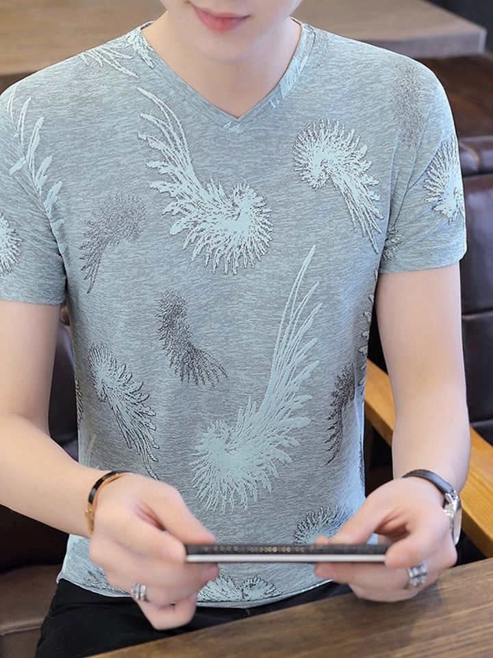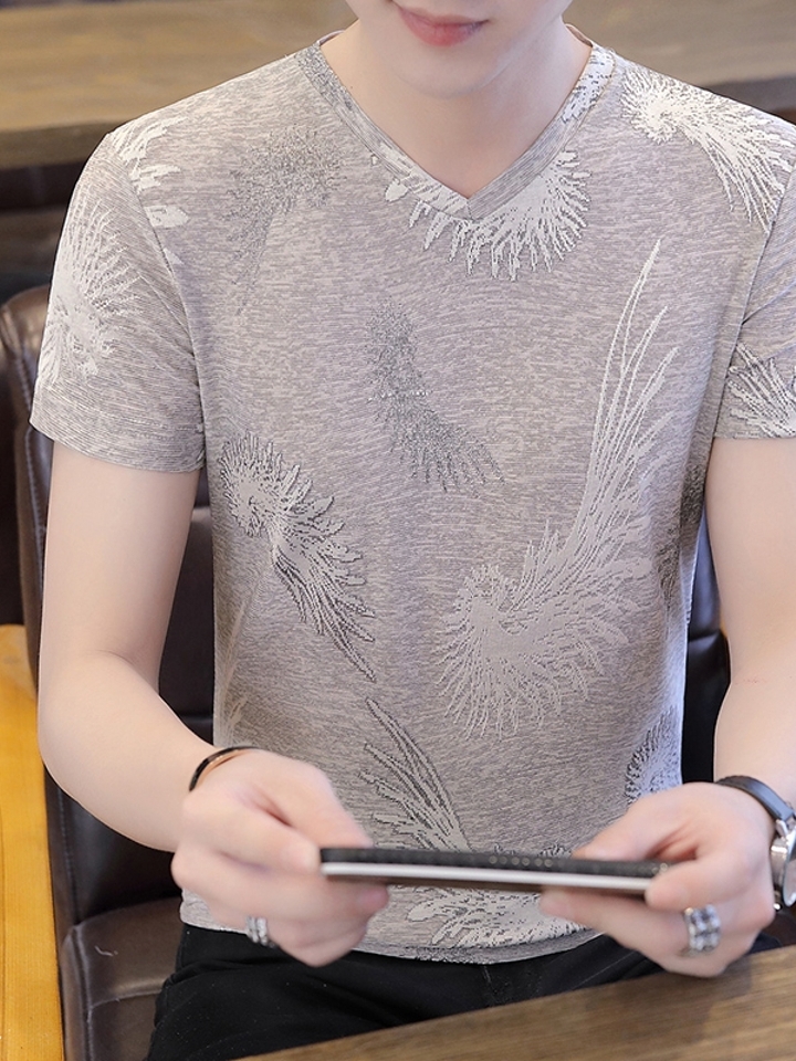 新款冰感t恤潮流个性V领桑蚕丝印花上衣简单的V领设计,可以更好的修饰颈部曲线,衣服上的紫色小花开出了夏的清爽,加上100%桑蚕丝面料,舒爽透气,衣服弹力很大,但是不用担心会变形哦!修身的版型设计,穿上可以更好的展现女性的S曲线。