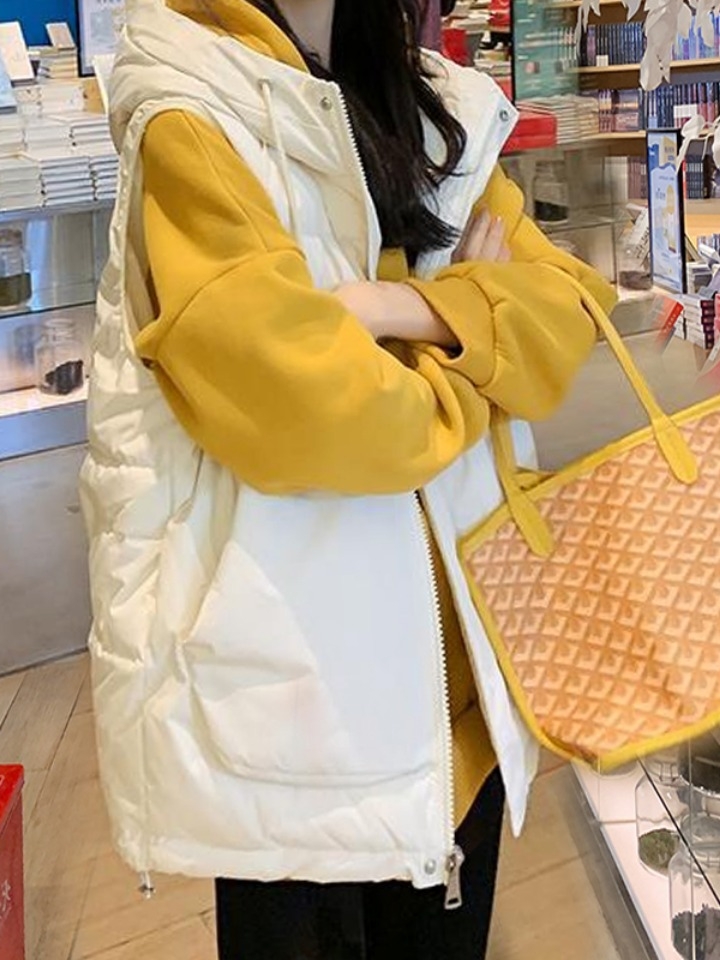 里层的毛绒给你最厚实的温暖感,马甲仿用了一点军大衣的元素,成为新的时尚造型款,给你带来一份不可言说的气质,衣服背后的图案刺绣。