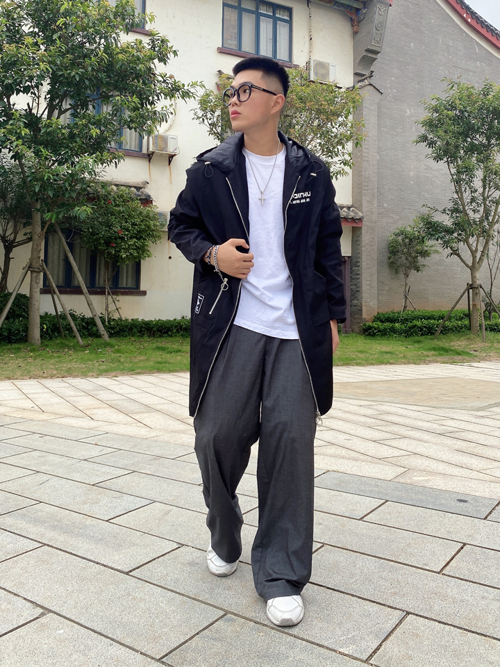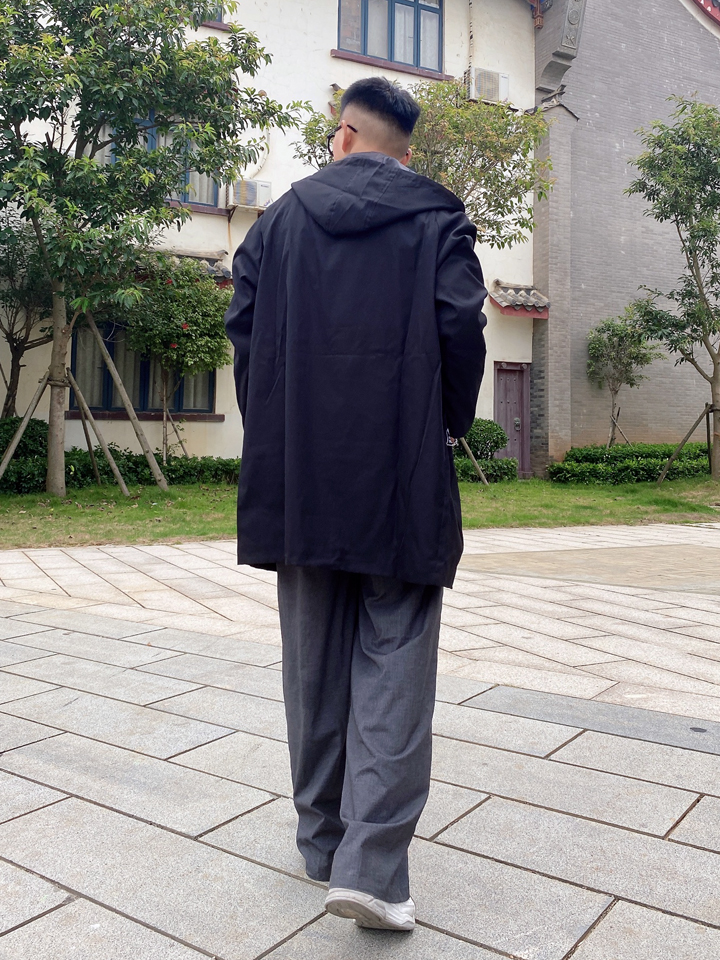 风衣是男士凹造型的必备时尚单品,这款风衣采用了连帽设计,轻松打造休闲自然范,配上黑的色调,更是增添了几分青春活力的气息。整体的版型是宽松立体裁剪,上身舒适不紧绷,修身显瘦的同时更好的体现出身材曲线,衣服上身帅气个性。