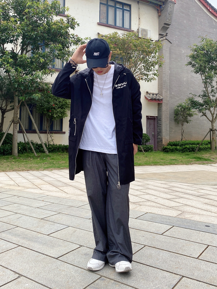 宽松的连帽中长款风衣,很符合青春休闲的风格。连帽的设计,为整体增添了几分个性时髦的气息。采用了黑色的底色搭配白色的字母刺绣点缀,更加的精致美观,满满的细节感。宽大的版型对身材的包容性更高,轻松掩藏住身上多余的赘肉。