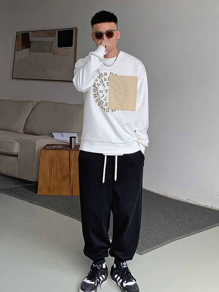 纯色款式的套头卫衣,在衣身上加入了撞色的拼接点缀。与众不同的是,衣摆处的拼接上还加入了撞色字母的装饰,不仅使得原本简单的衣身色调,还带有着丰富视觉感。个性撞色的拼接,更显得亮眼吸睛。