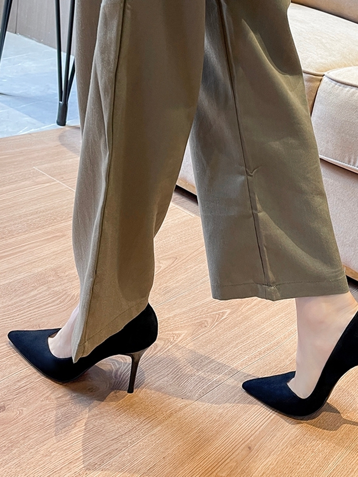 黑色高跟鞋无论出席正式场合、通勤还是平日里约会穿着,都体面大方。尖头高跟增强气场,但鞋头不过于尖锐的处理,并不会给人留下刻薄的印象。扣袢位于脚踝下沿,与后跟之间预留的空隙足够将脚踝修饰纤细,呈现性感。