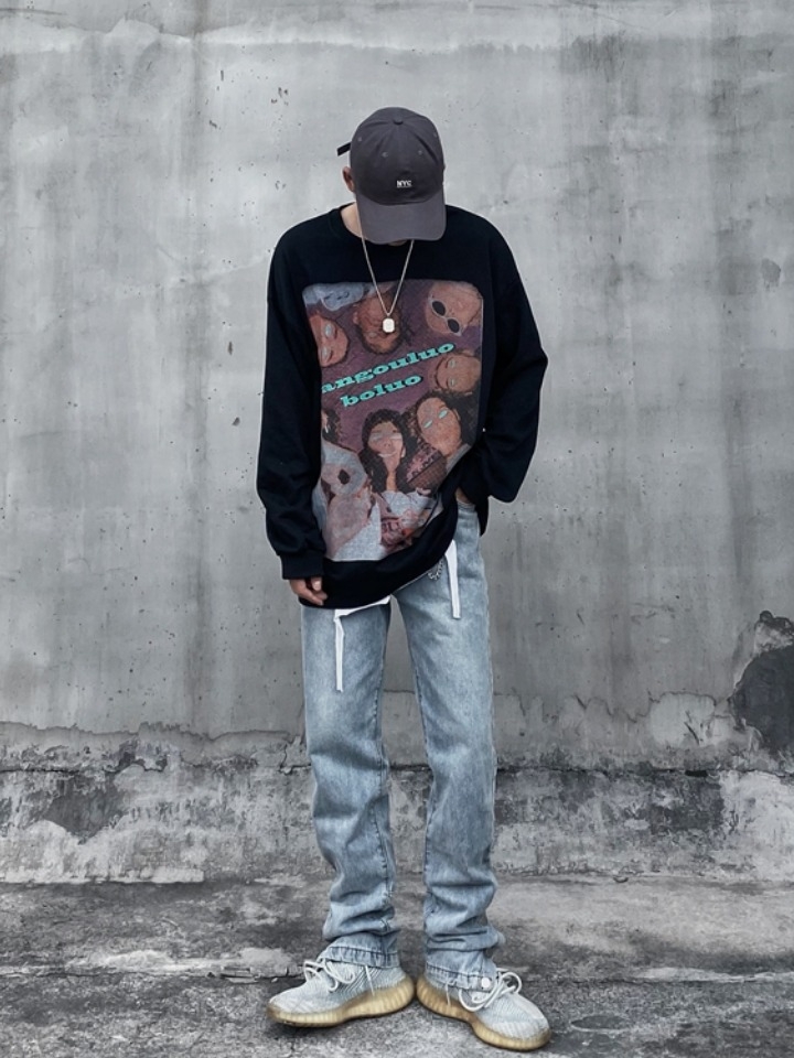 简单利落的直筒版型,穿着舒适,活动自如,适合各种身形穿着。科技感的印花元素与INXX字母呈现出迷幻未来的神秘感。