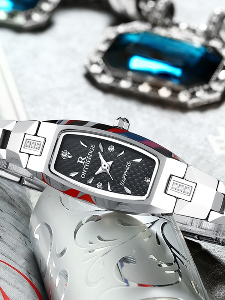 奢华的表盘,经典三针设计,优雅时尚钻点,尽显尊贵与非凡。优质钨钢表链,精心镶钻,整体奢华稳重。款式时尚,简单大方,走时准确,戴着漂亮。
