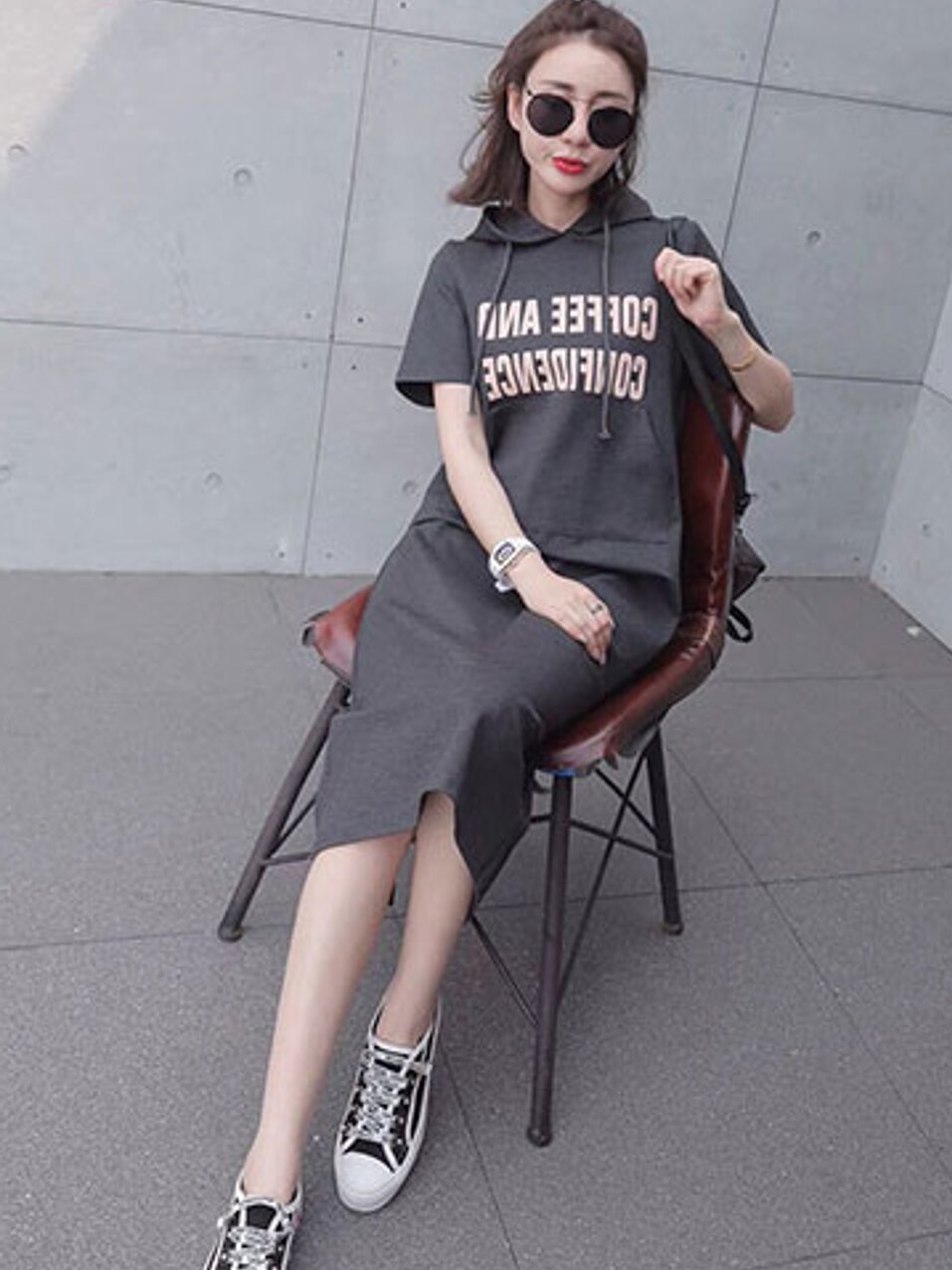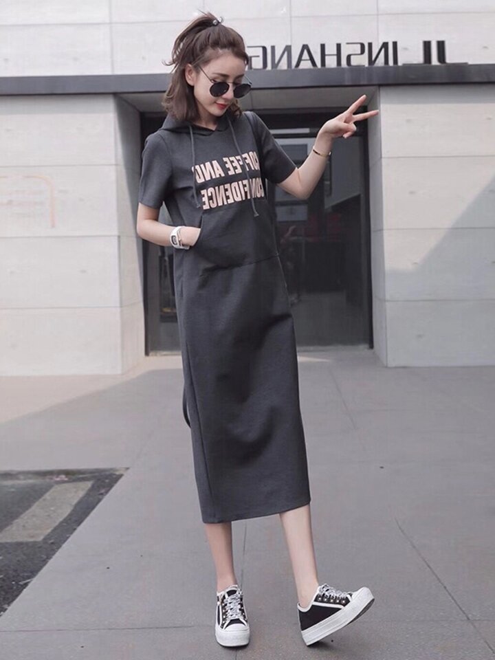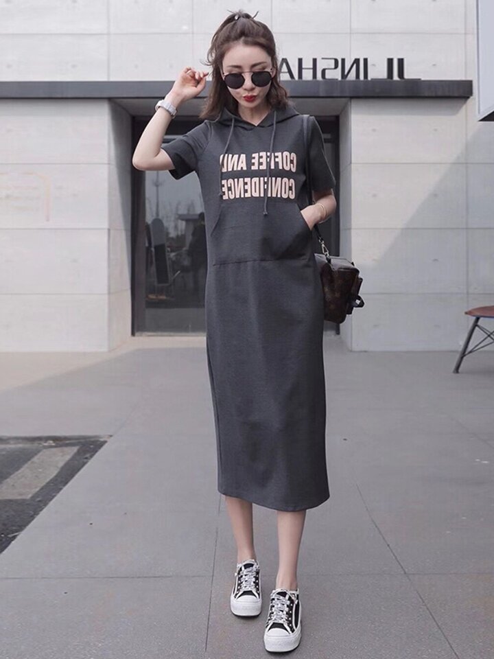 一款卫衣改良版的连衣裙、风格比较休闲、宽松的版型带着学院气息,连帽设计透着减龄感,这些小设计让简约的衣服,低调中不失看点,不长不短的长度刚刚好,多一份老城,少一分过于稚嫩。