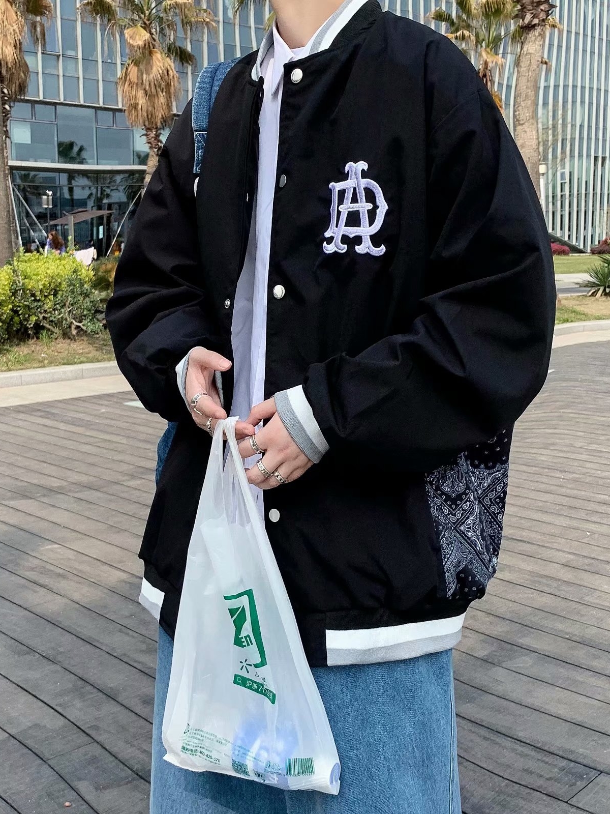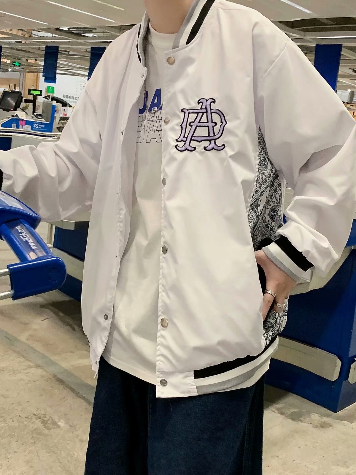 这款棒球服卫衣,螺纹棒球领设计,时刻穿脱休闲的运动风。大面积背贴刺绣,绝对的尖货孤品,瞬间增添潮流时尚感。拼接白色衣袖设计,