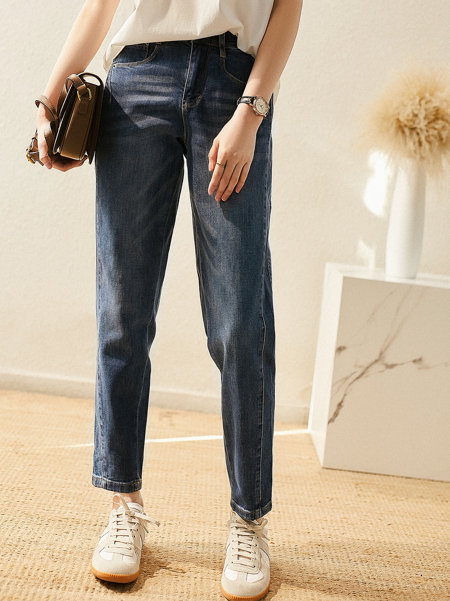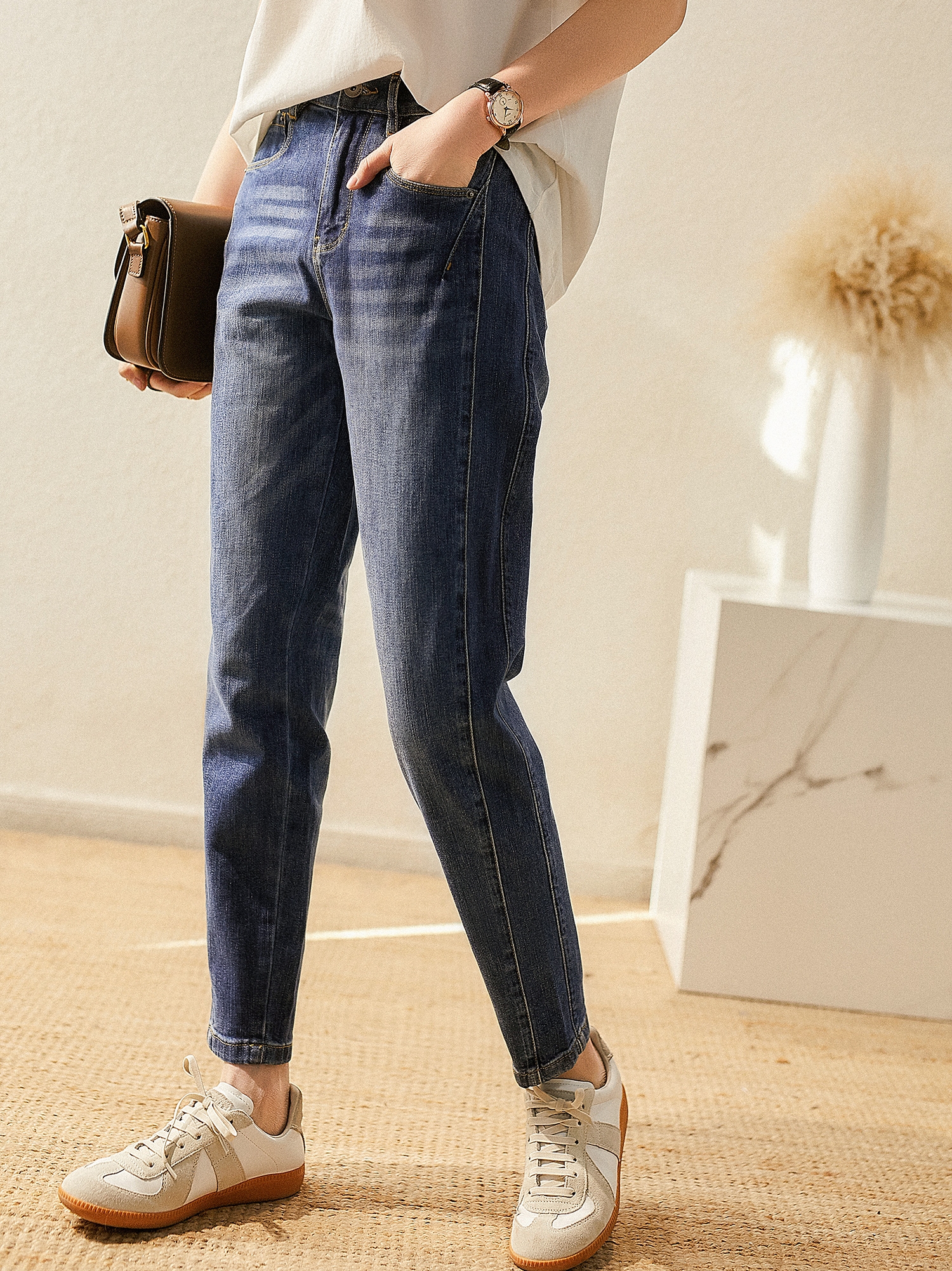 本款牛仔裤在面料上采用长纤维棉花,不易被磨破,穿着柔软亲肤,结合微垮裆设计,弹力舒适无束缚。全方位的立体剪裁。