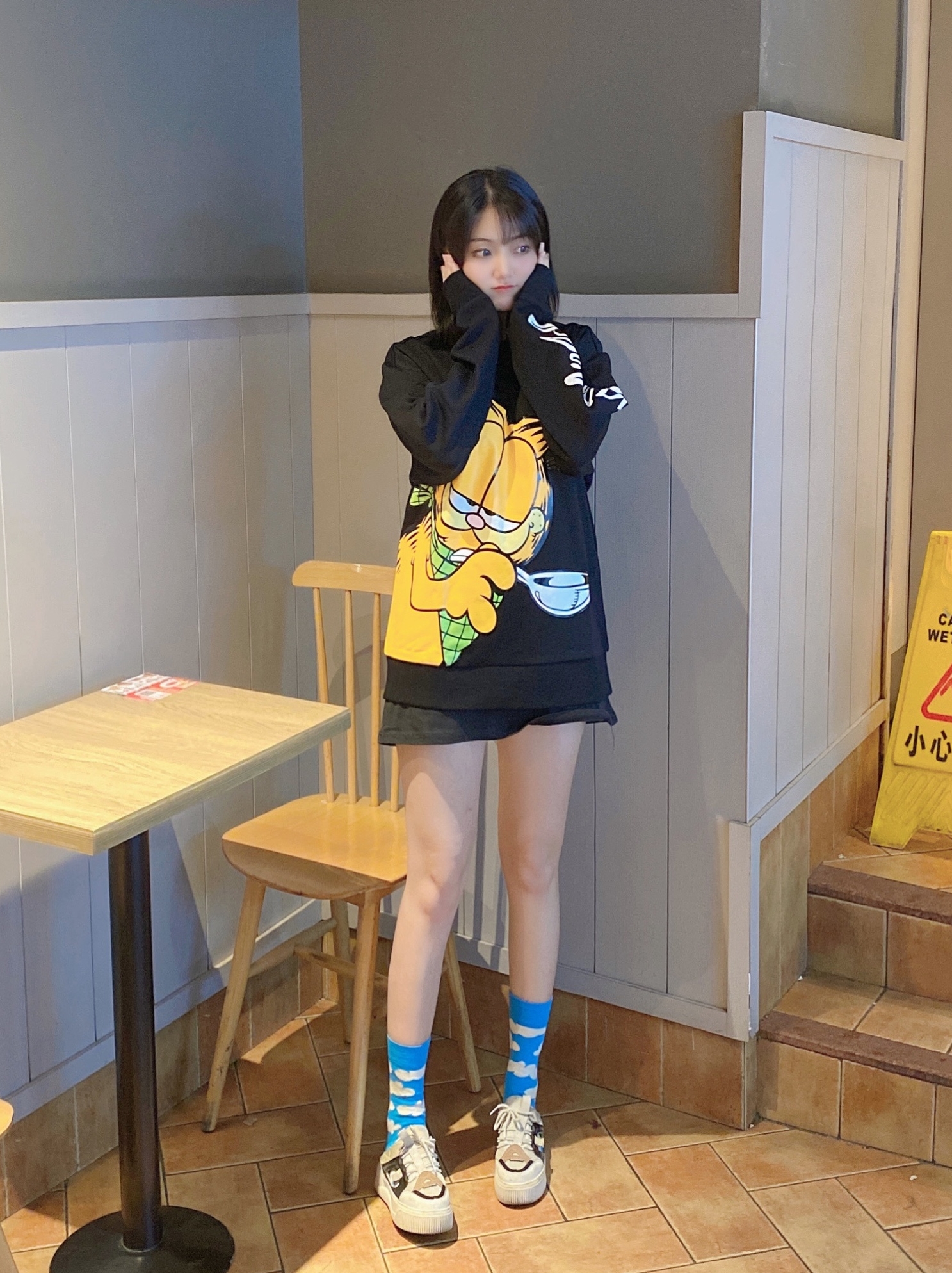 加菲猫三方联名作品。打破传统加菲猫形象,加入黑暗系风格,撕破禁锢的围栏