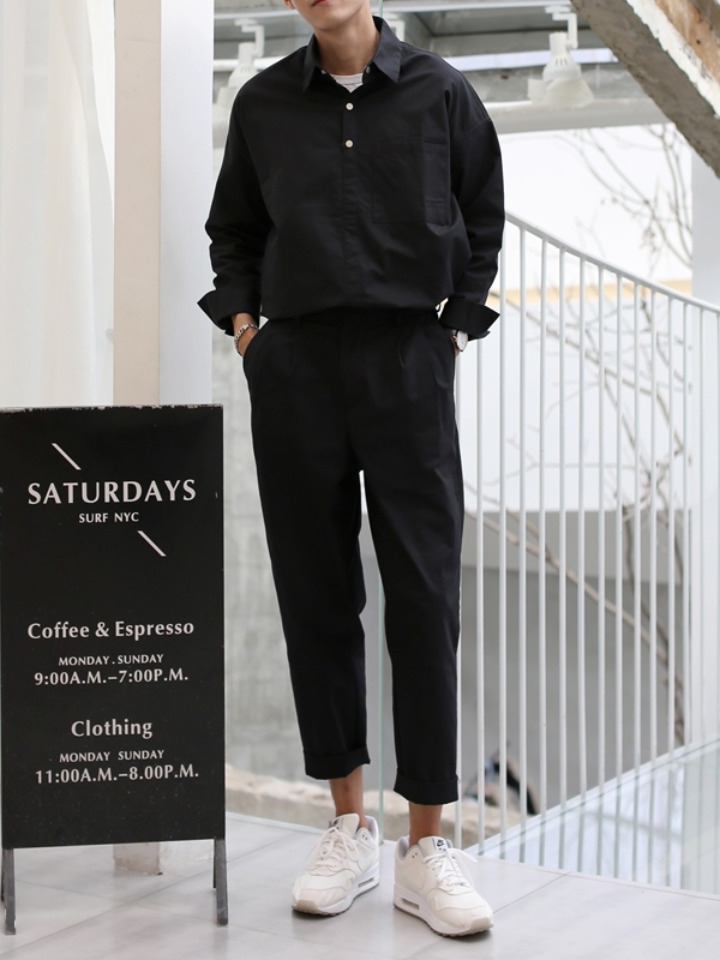在复古优雅的款式,不妨选择黑色的精致领结作为点睛之笔增加绅士气场。裤子的选择也尽量靠近蓝灰色谱,这样整体的蓝+黑色调,干净整洁又时髦。