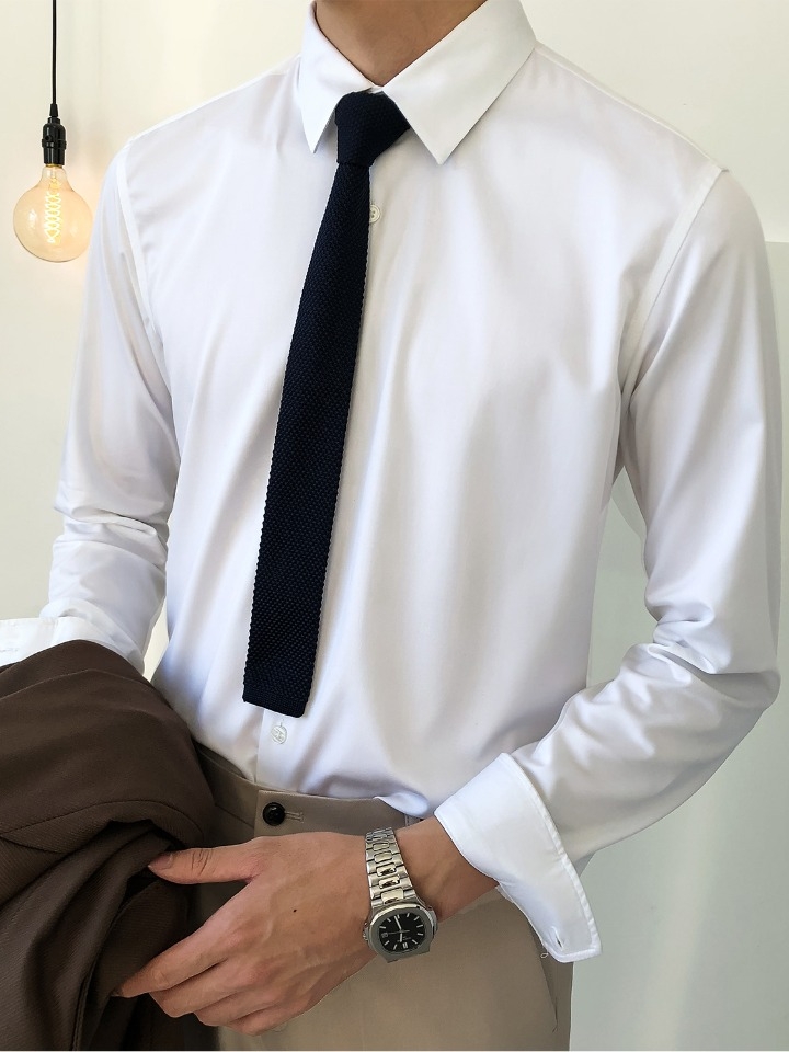 不管是上班还是日常穿着都适合的纯白色衬衫百搭又不失气质,精选纯棉面料,穿着舒适,透气,柔软亲肤。修身版型,巧妙的装饰出男士性感的身材曲线,穿着舒适有型。
