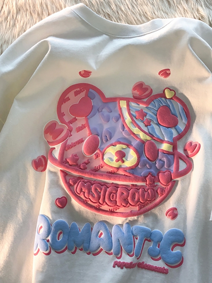 充满个性与逗趣感十足的小熊印花,表情惊讶,萌动可爱,带着俏皮与你不期而遇。既玩味又俏皮,利落简单的版型服帖有型,良好的弹性,上身活动自如不紧绷,整体尽显小清新范。