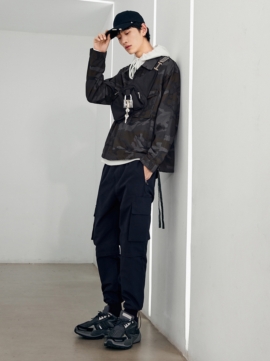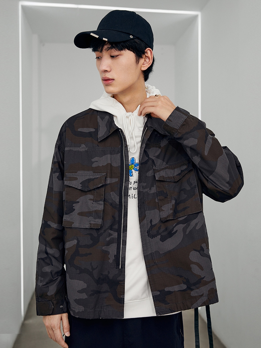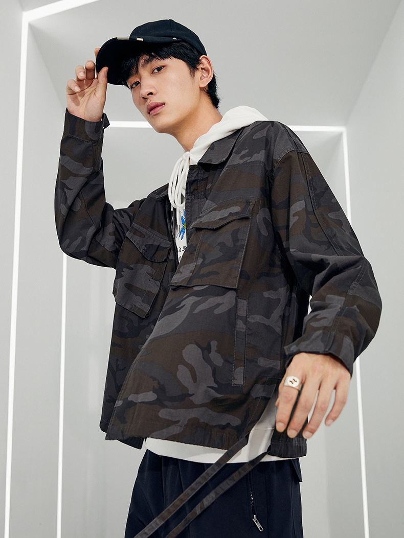 简约的翻领夹克,大气的版型搭配牛仔裤或是休闲裤都很时尚。迷彩的植物印花在复古的底色上更加个性。易搭又时尚!