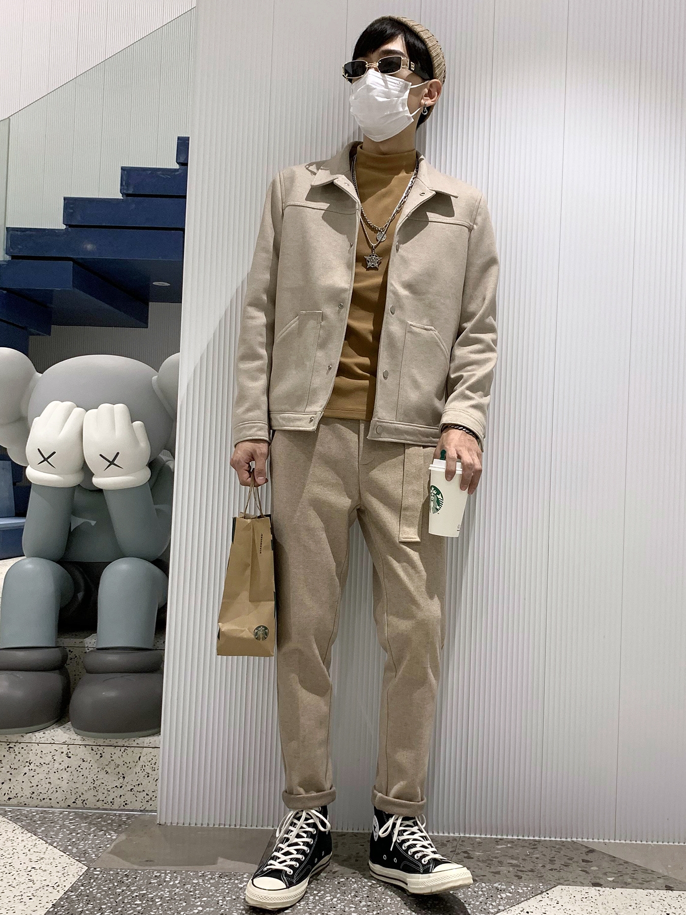 终于收到店家更换尺码后的裤子了,真的十分感谢。贴身舒适,版型面料质地满意,适宜春秋、天气转凉时穿,混搭了一身,权作参考吧!