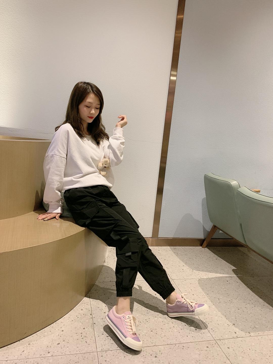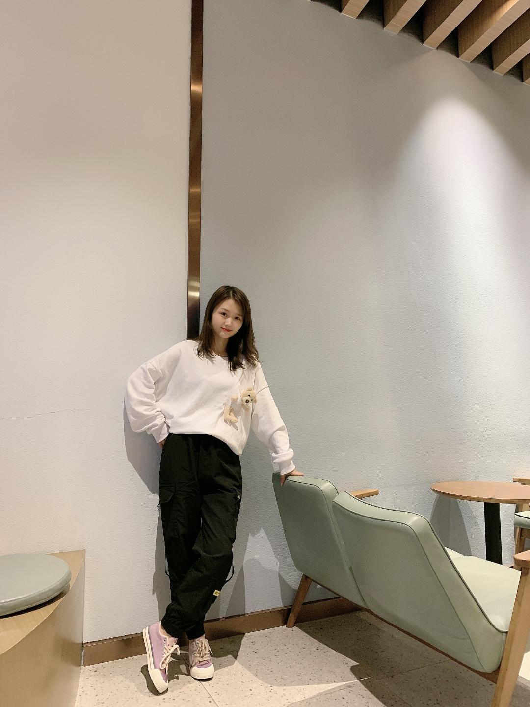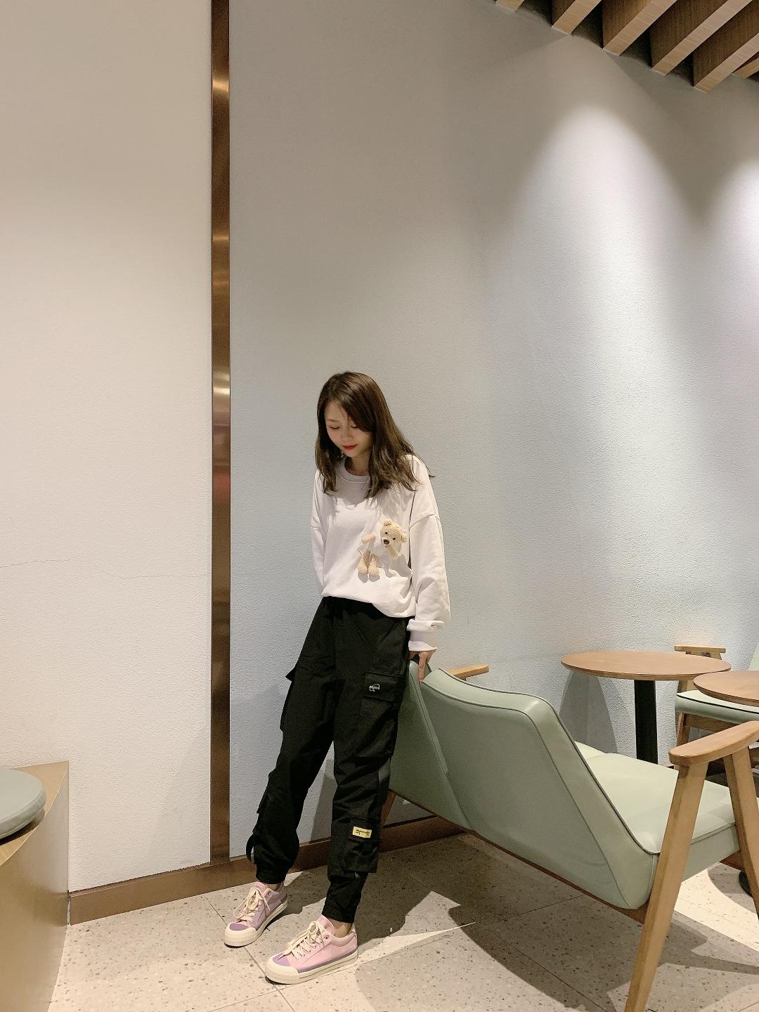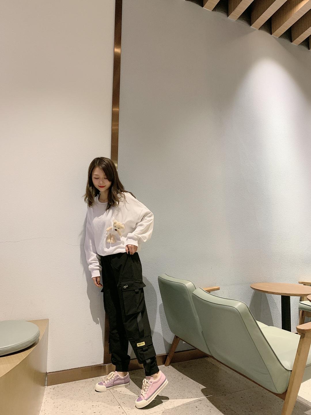 简单宽松的裤型设计,修饰腿部线条,穿着时无束缚感,活动自如。束脚的裤型更显着霸气利落感,搭配造型感上面,可以选择上T恤衫,活力十足。