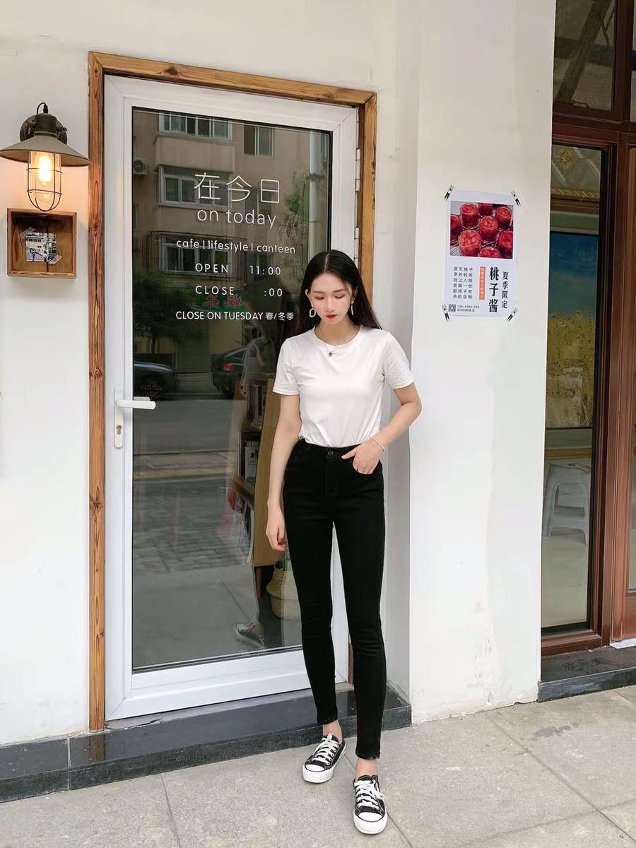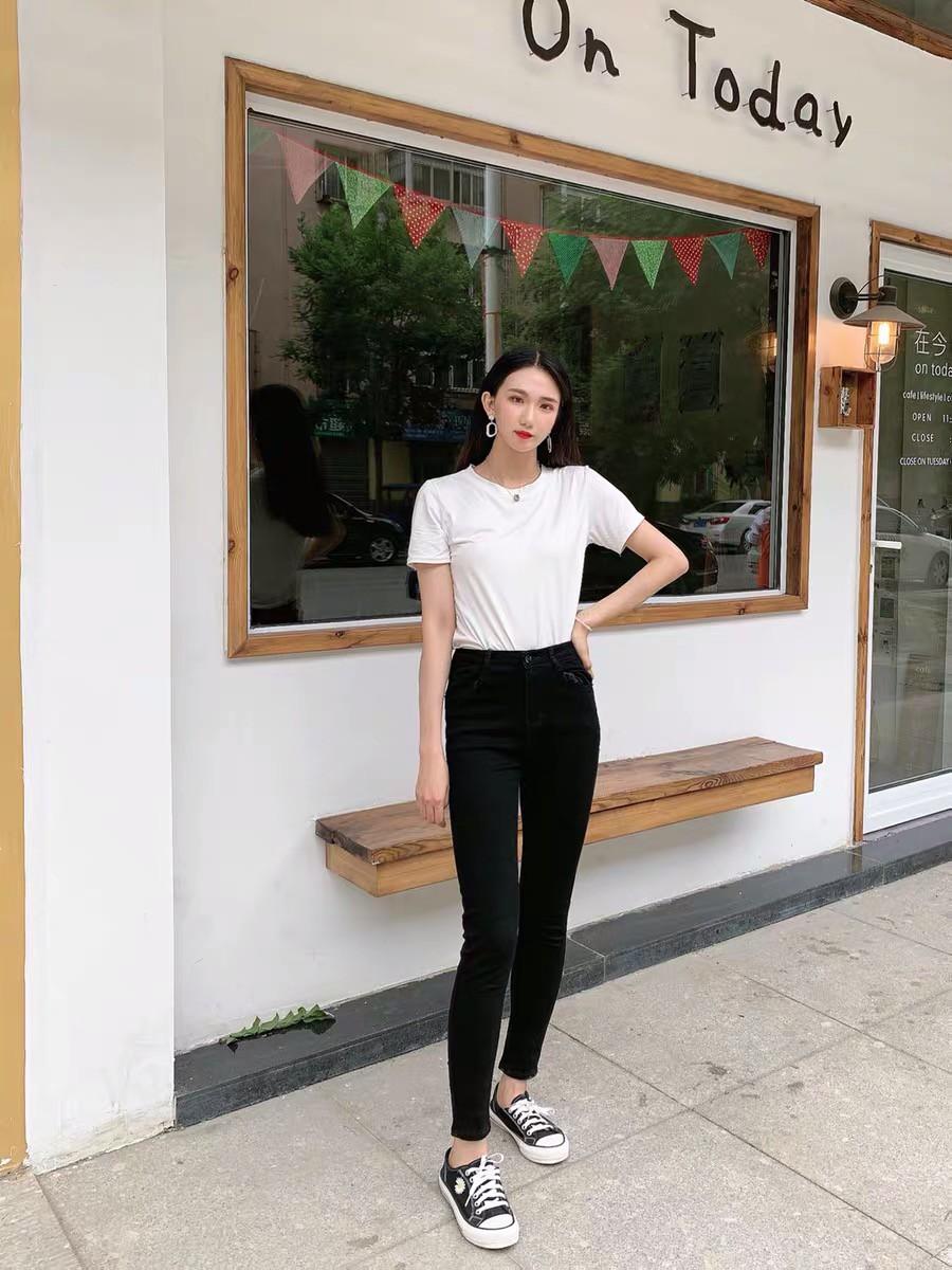 高腰设计,拉长身材比例。高腰牛仔裤,显瘦显腿长。直筒裤型,修饰腿部线条。