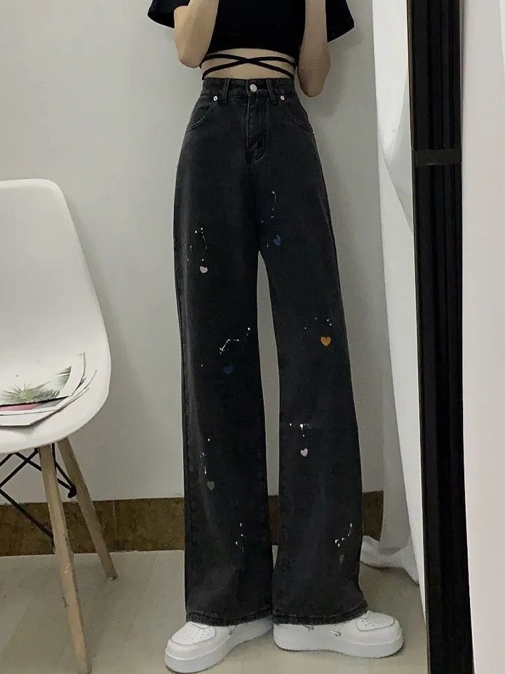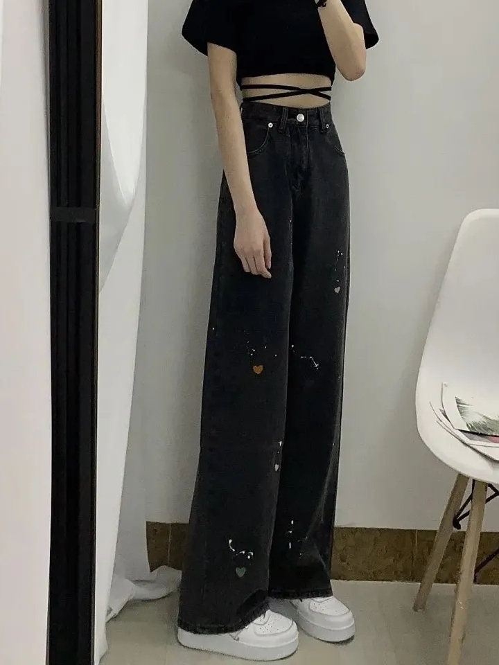 爱心设计, 破洞BF风,春夏秋冬四季皆可穿必备的时尚单品,立体的剪裁,脚口毛边设计,显得非常随性,而且容易搭配有韩范。这是一条既帅气又甜美的阔腿裤,时髦的少女意。