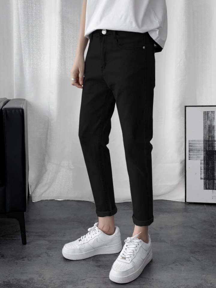 裤型很好不会给人那种很瘦小的感觉也不会显得太宽松,如果你厌倦了那种一成不变那么这条裤子你值得尝试。