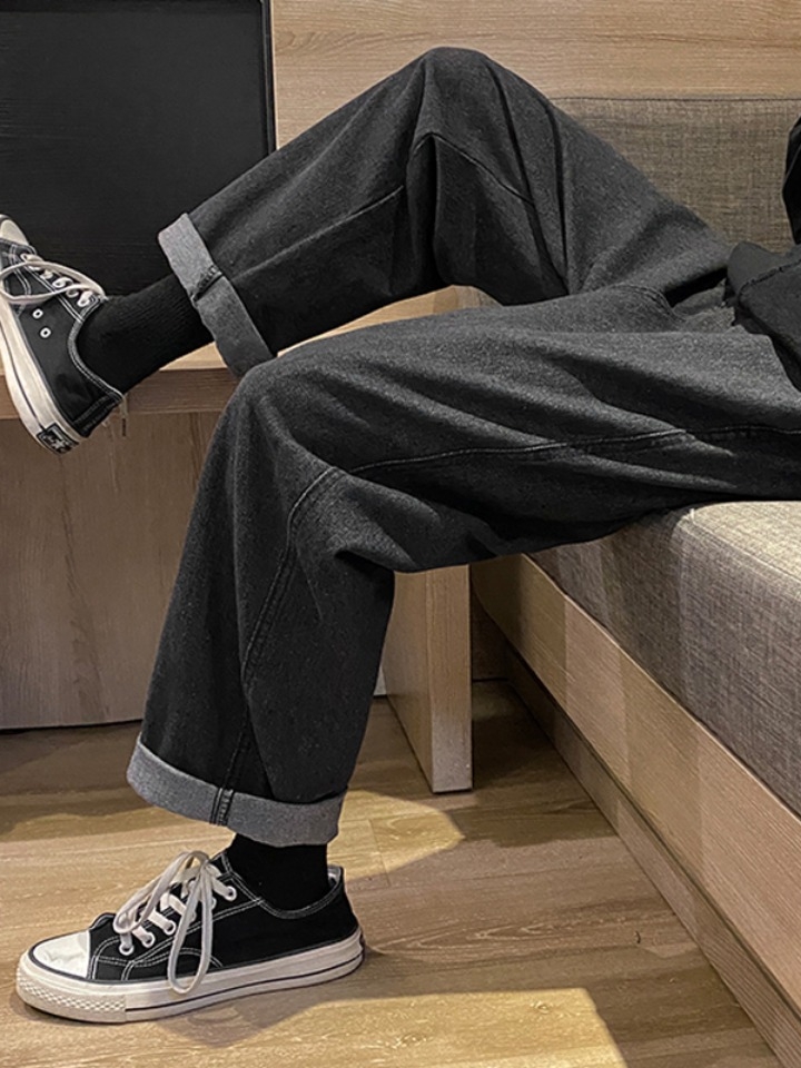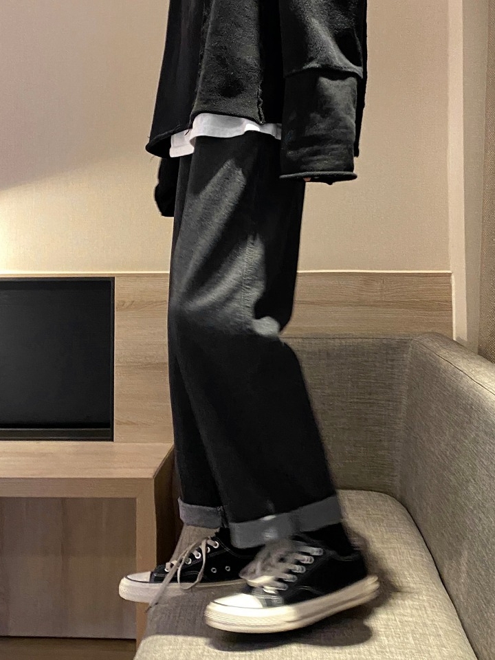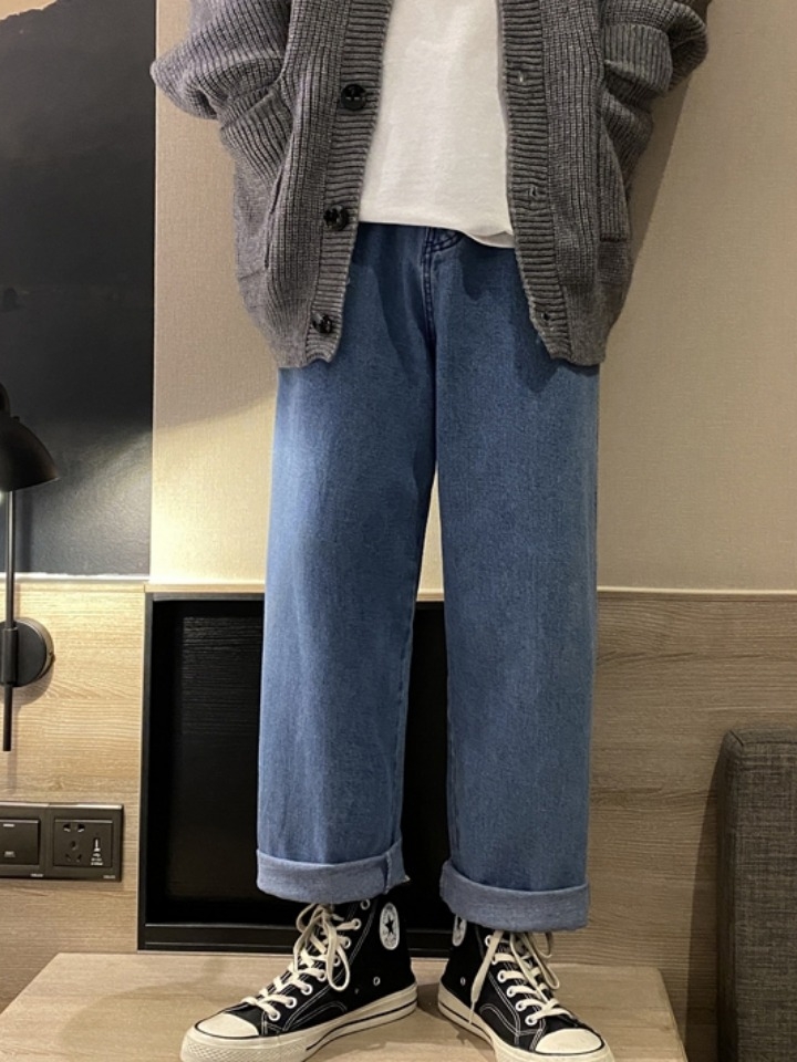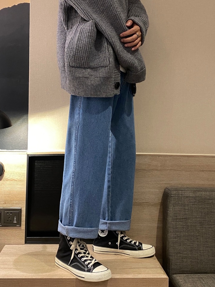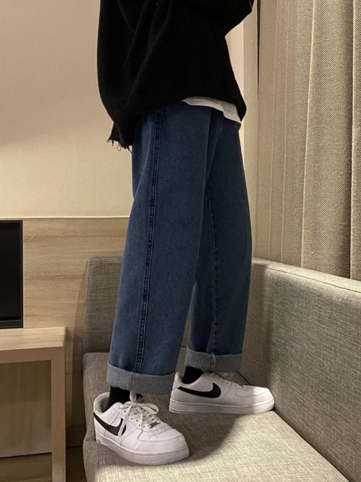 高腰设计,拉长身材比例。高腰牛仔裤,显瘦显腿长。直筒裤型,修饰腿部线条。