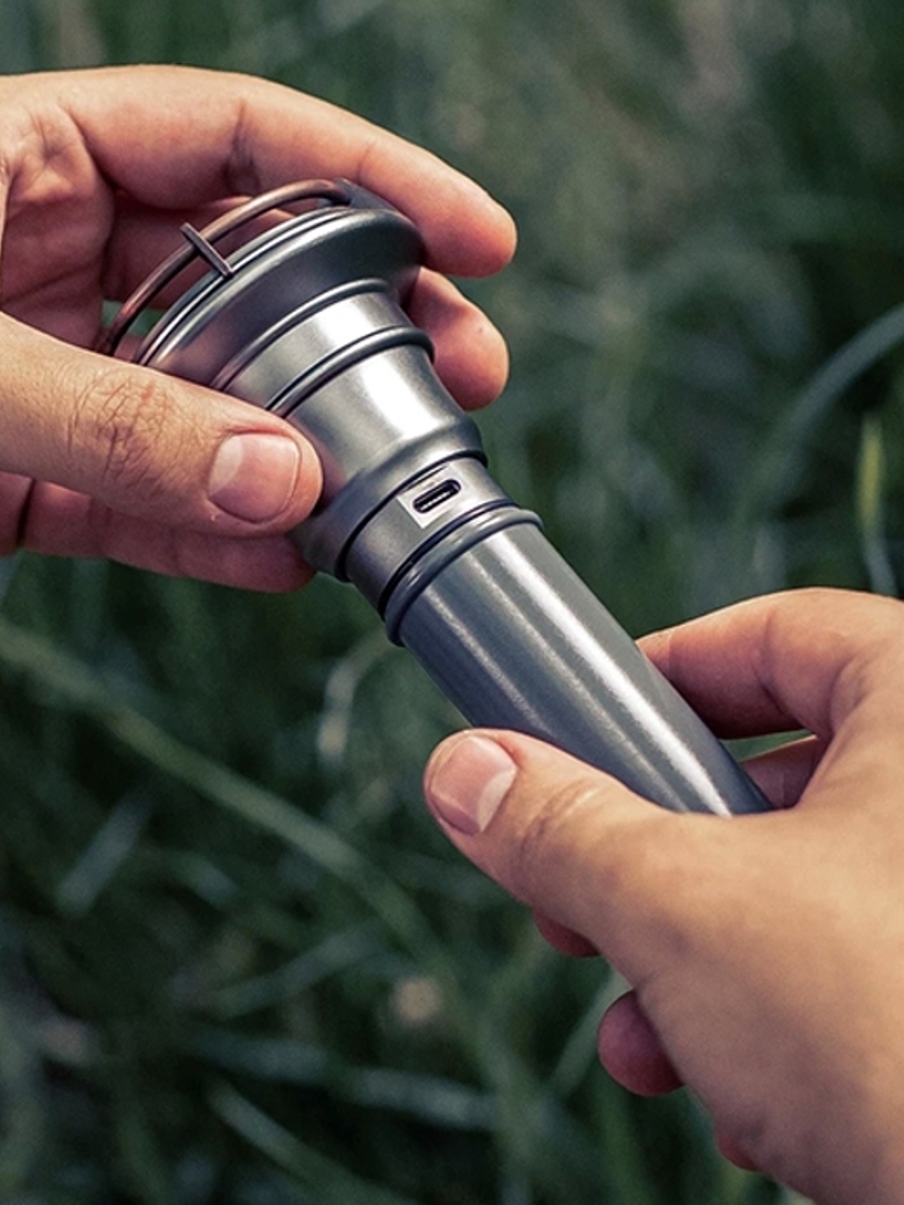 其筒身是精选航空铝制外壳打造而成的,不仅牢固抗氧化,可以有效阻挡雨水入侵,并且筒身可以收纳防水火柴与火绒。而橡胶材质式的握把,天然环保无毒害,可使拿握舒适轻便无负担。