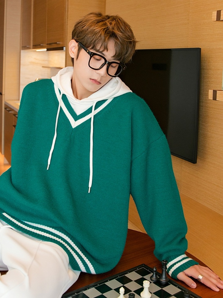 很学院风的一款拼接的假两件衬衣, 宽松的款式让你的穿着更加舒适, 更加的减龄。