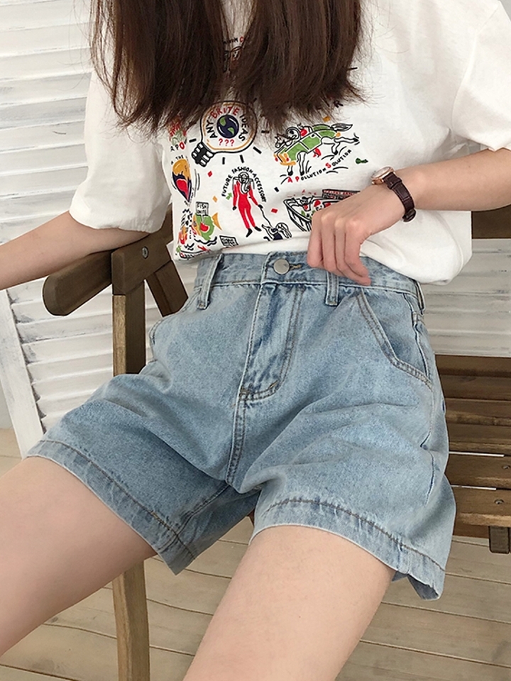 经典的牛仔元素,一直走在时尚的前沿。宽松直筒版型,包容各种身材,还显瘦哦。高腰设计。拉高腰线显腿长。