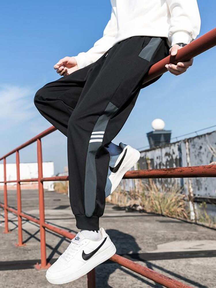 九分束脚裤的款式,穿着显利落的同时更具青春气息,活力十足;裤身上的撞色缝线,美观又实用,将裤身有层次的分割,装饰裤身不单调。含棉材质,柔软的触感,穿着更舒适。条纹印花的融入,呼应整体设计,体现民族特色的同时又不失潮流特点,简约又洋气。