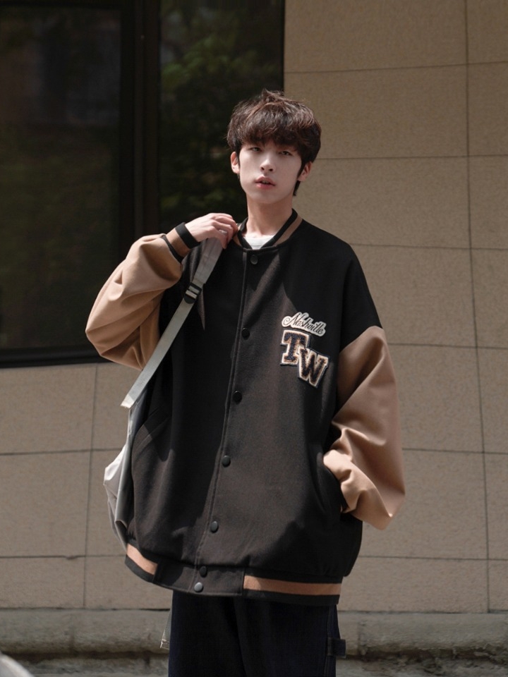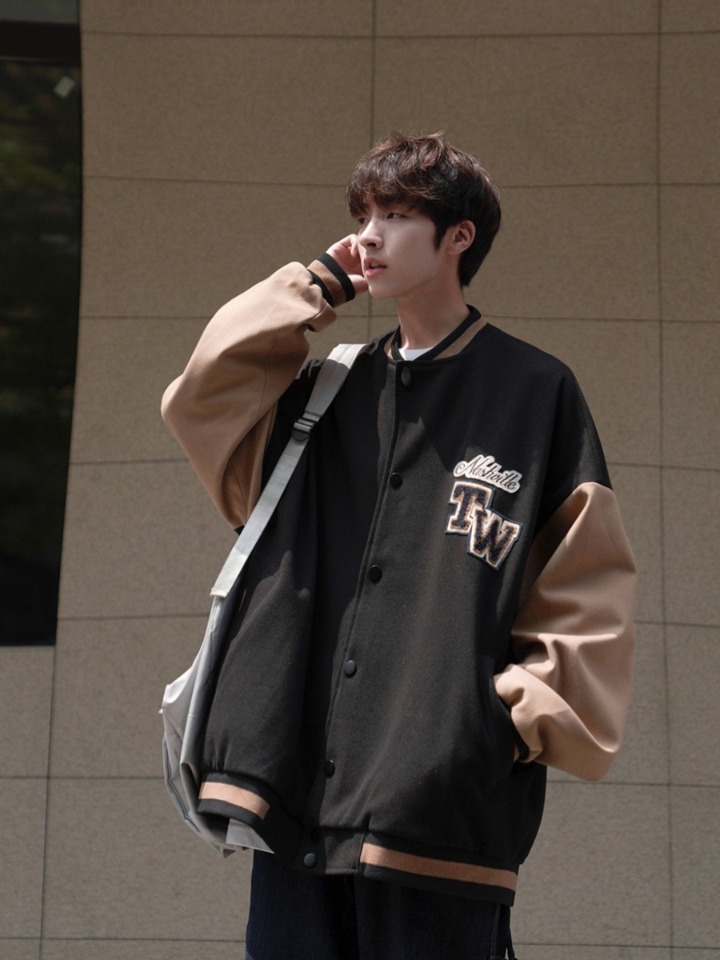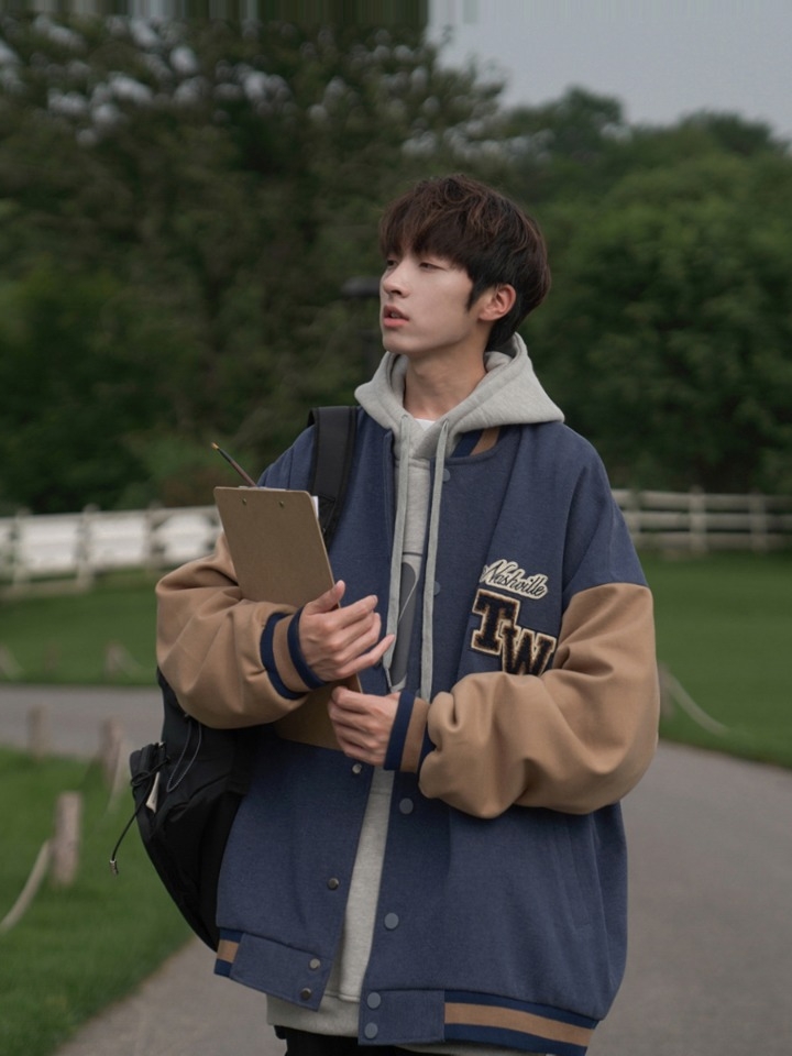 胸口处刺绣样式的狗狗头像,趣味的样式,在体现精致感的同时又表达了年轻活力,减龄又时髦。后身的字母图案,呼应前身设计,增添看点不单调。撞色衣身与衣领袖口下摆的撞色条纹相呼应,体现视觉层次的同时又美观,装饰衣身不呆板。棒球领夹克,凸显利落感的同时更易搭,潮流感十足。