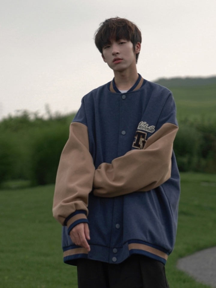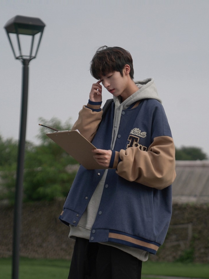 非常具有清新文艺范儿的一款男士夹克,撞色异料拼接的棒球领的设计,十分具有休闲味儿绅士气息,个性的翻盖口袋,美观又实用,门襟防风档片,保暖防风效果好。