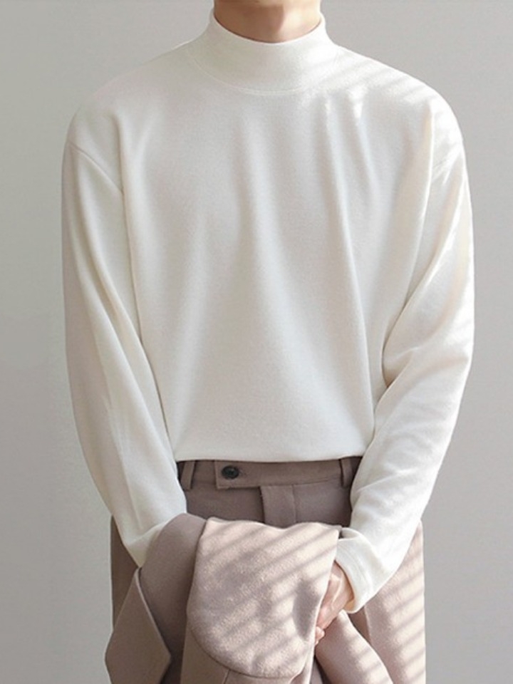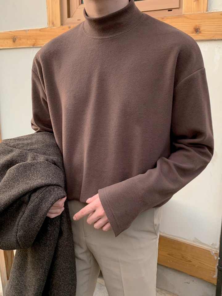 纯色半高领保暖打底衫,宽松版型为了适合多样身材的妈妈们,纯色简单百搭,唯一一个亮点在于前领下方V型水钻样式,一个独特的亮点足以点亮整体,对于追求简约的妈妈这样一个亮点足矣