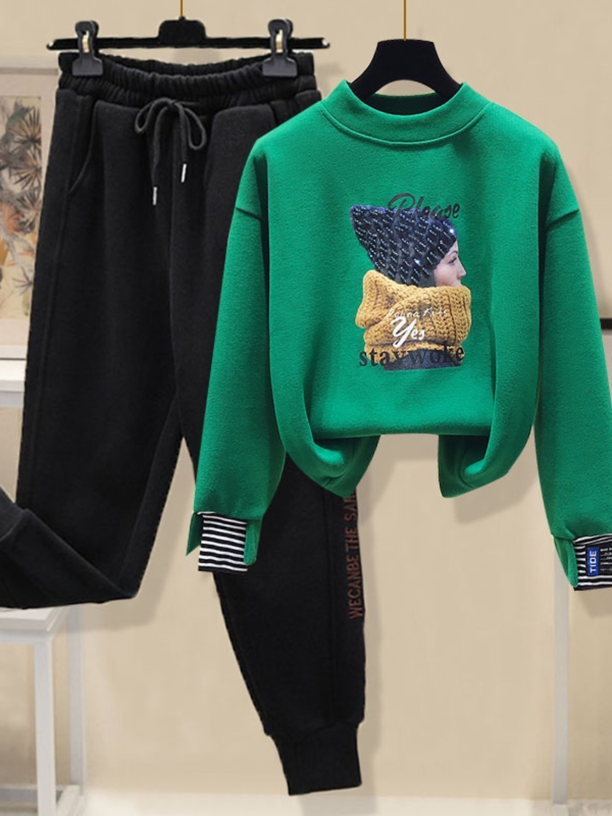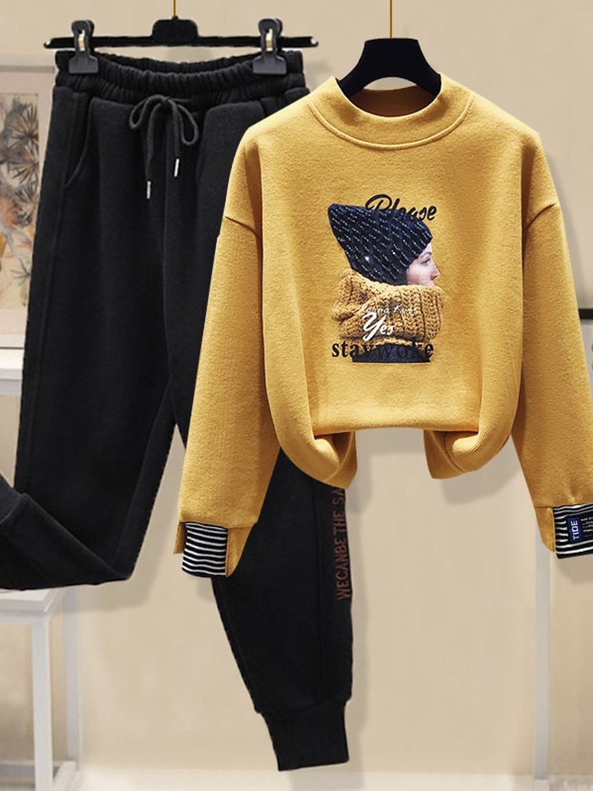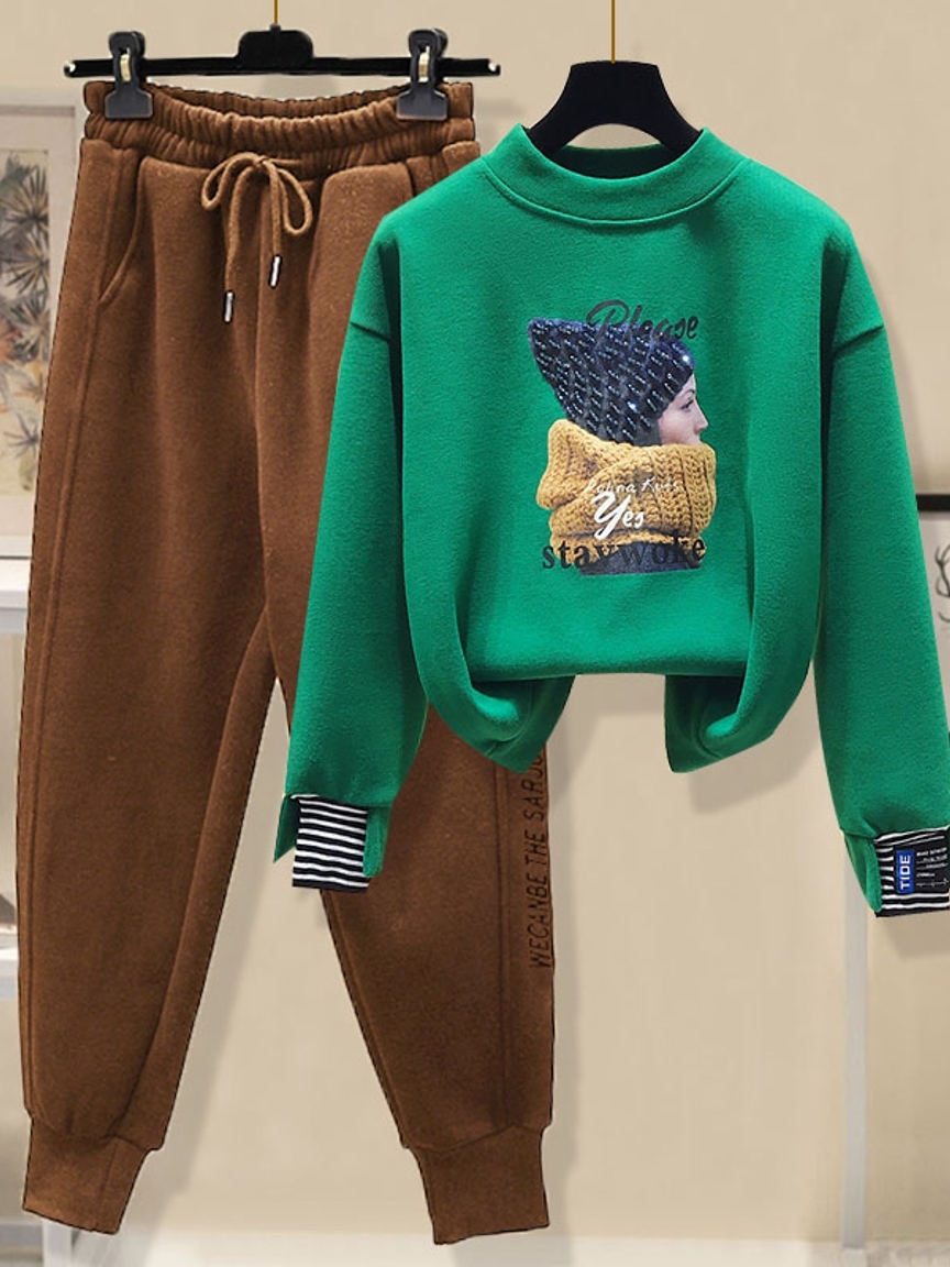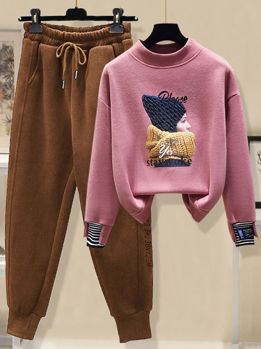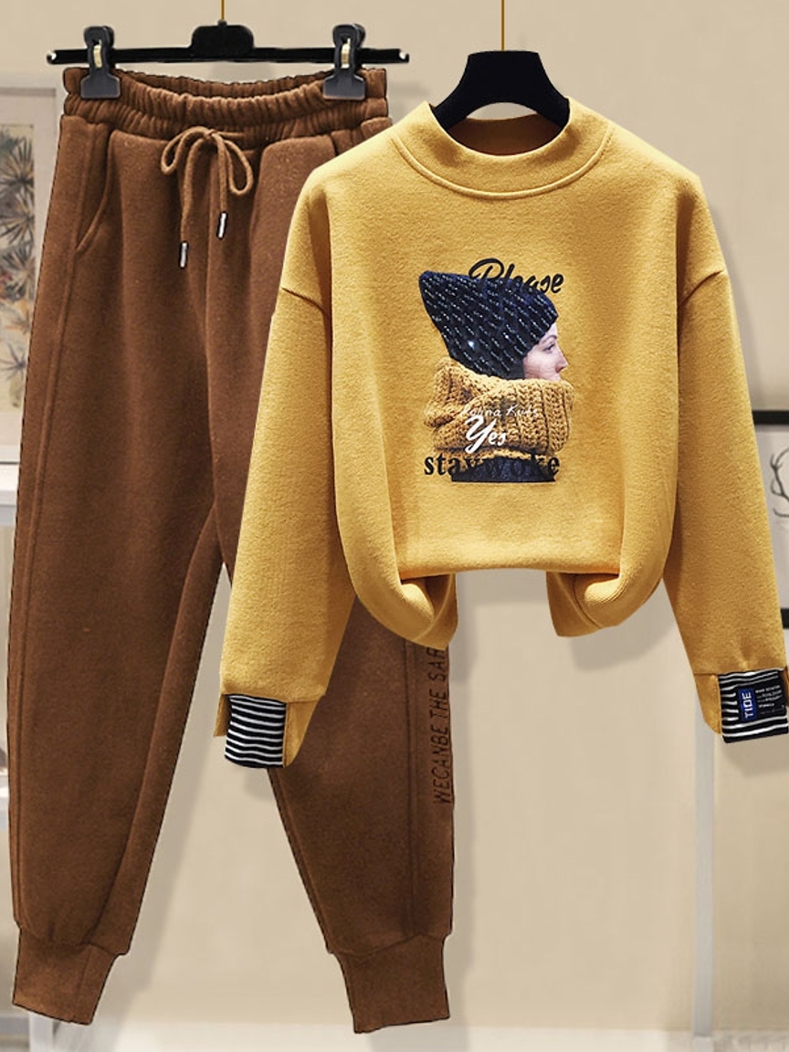 这是一套不仅深秋能穿初冬也能穿的套装,它是加绒的,摸起来就特别的舒服,包容性也比较强,里面是可以内搭打底穿的,好看又保暖。