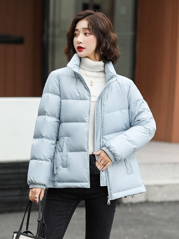 很喜欢它的立领款式,不仅防风保暖,而且还能将脸庞修饰的更加娇小哦~直筒版型也是超赞的,像我这样的小个子也能轻松hold住,丝毫不显臃肿。