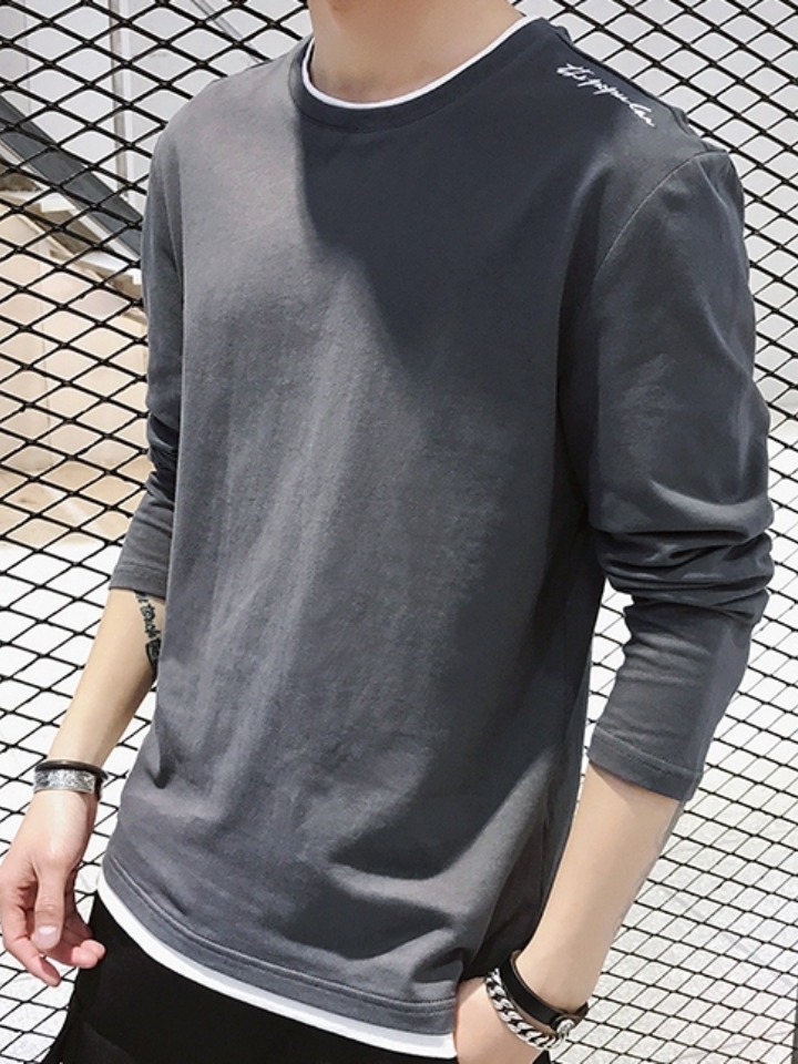 时尚潮男T恤,简约的款式,看起来简单不繁琐。炫酷秋季,挡不住的时尚潮流。精选优质面料,光滑舒适亲肤,厚实不透,衣服充满弹力不易变形。双层领圈拼接设计和精致时尚LOGO使单调的打底T恤不再单调。合身的版型,不仅可以打底内搭,更适合独立外穿。