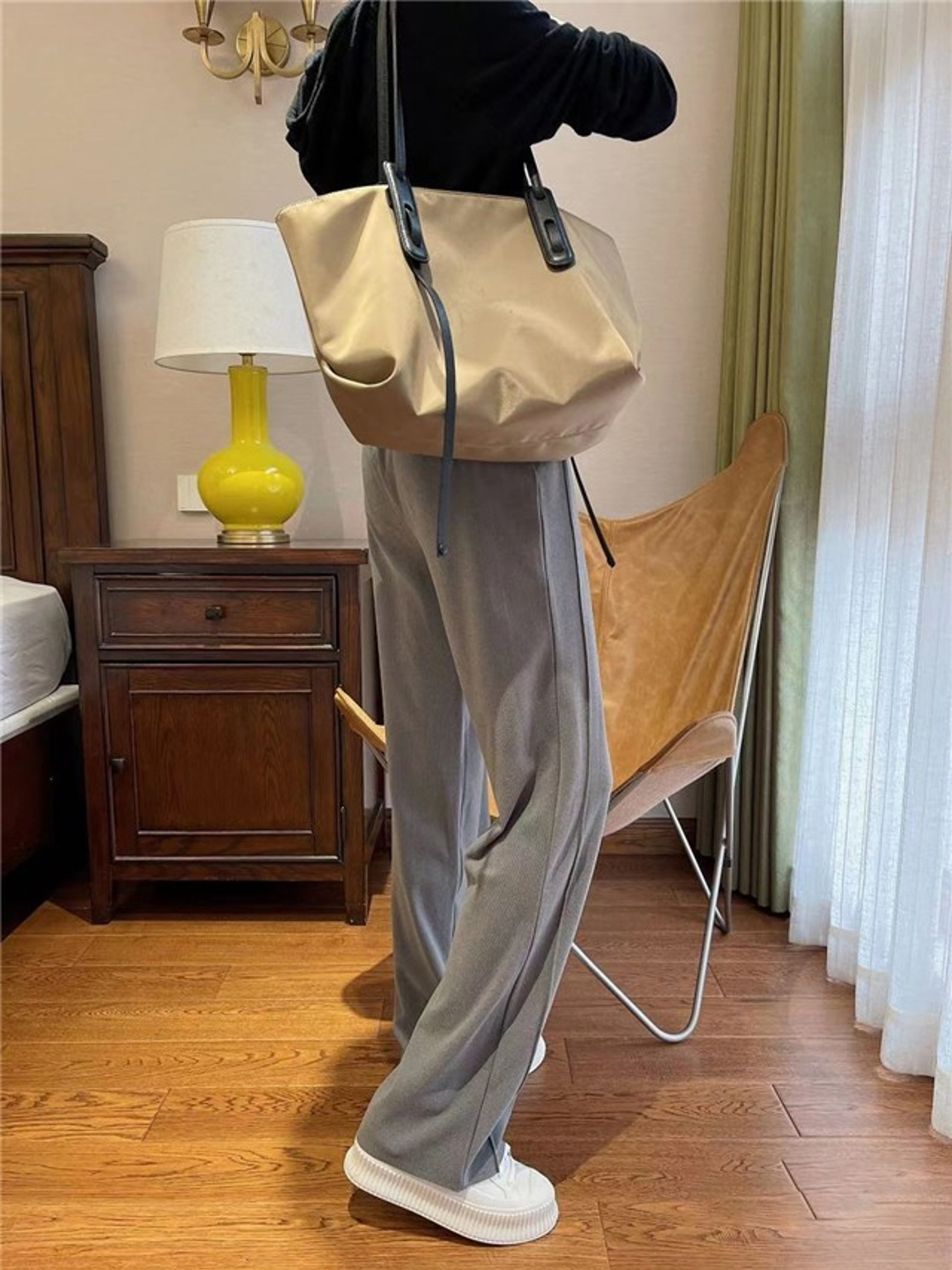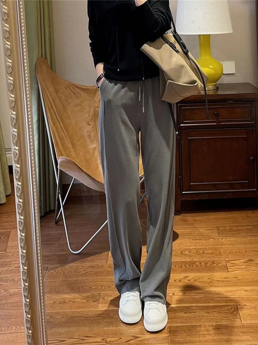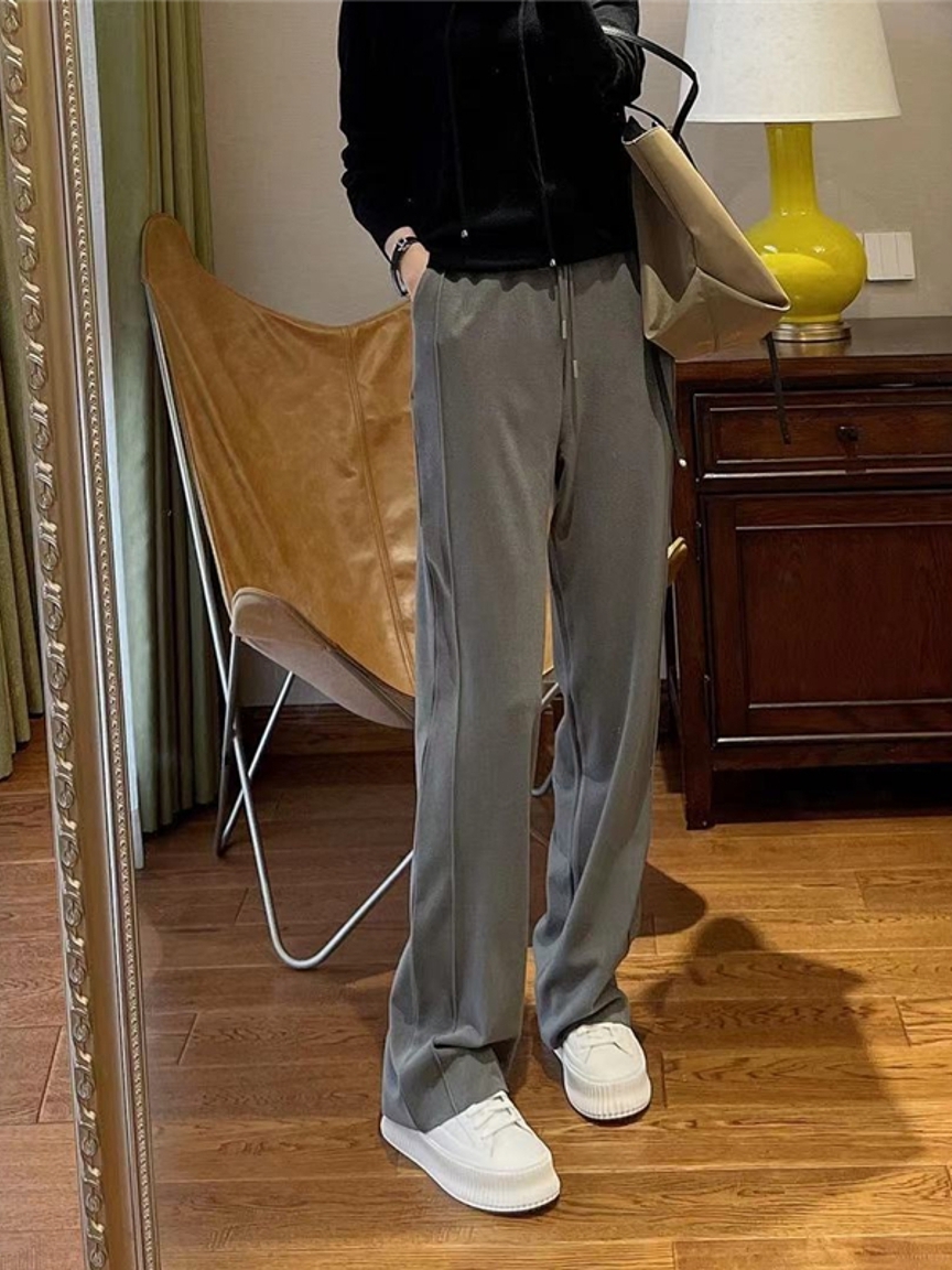 这款拖地裤面料轻盈柔软,手感特别的舒适,而且它还有一定的弹力,穿在身上垂顺不拖沓,透气性也好不会有闷热感。