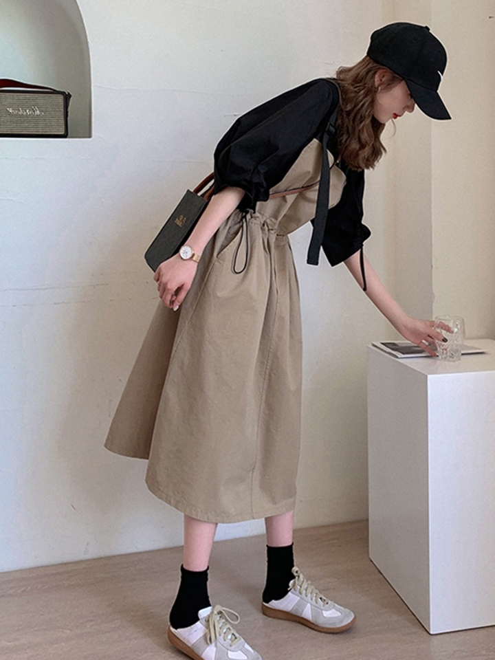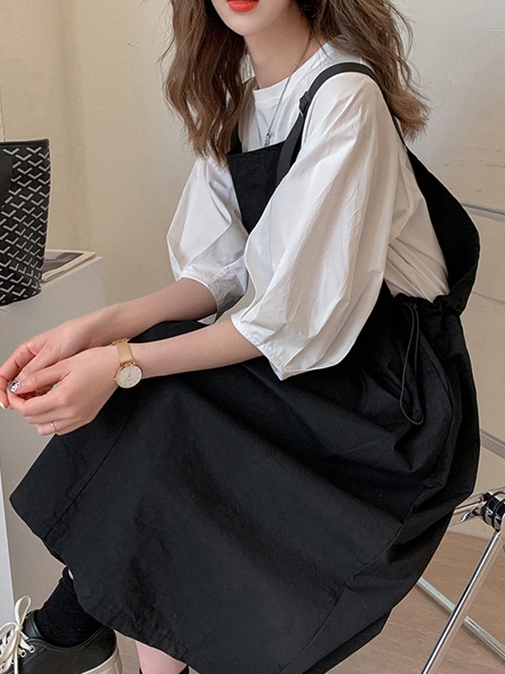 两件套的组合形式,背带的款式,减龄的气息自然来。而且带有时髦的印花装饰,增添不少的时尚感,可以更好的展现出小女人妩媚感,充满了特色感,打造出淑女的气质感。