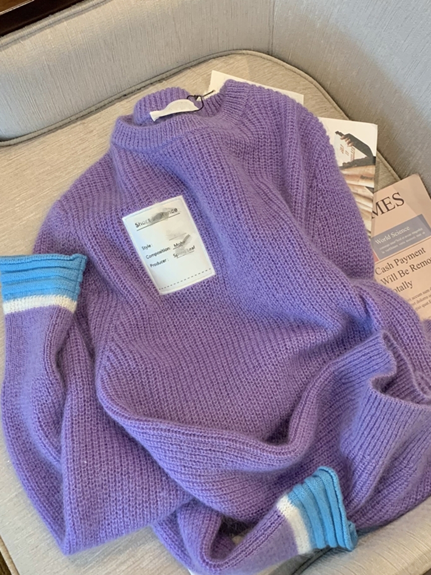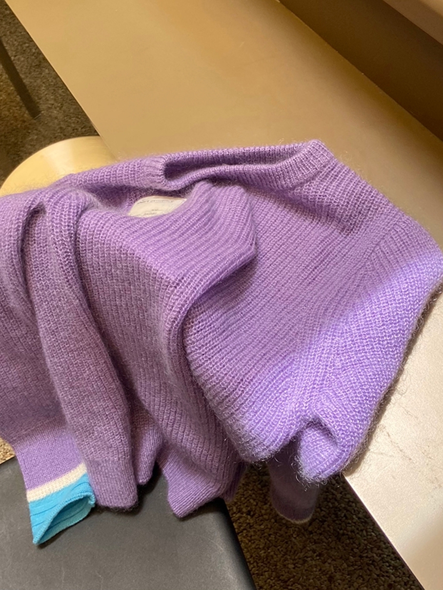 今年巨火的紫色针织毛衣,一定要给自己来一件,软软糯糯的马海毛摸上去真的太舒适了,宽松的版型,上身显得慵懒的特别的简约舒适。