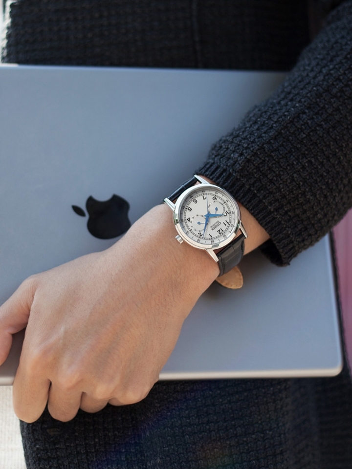 此款腕表简洁的线条流动在低调的金属光泽之中。表针采用优雅小蓝针指针,不俗气也不浮夸,尽显绅士风格。