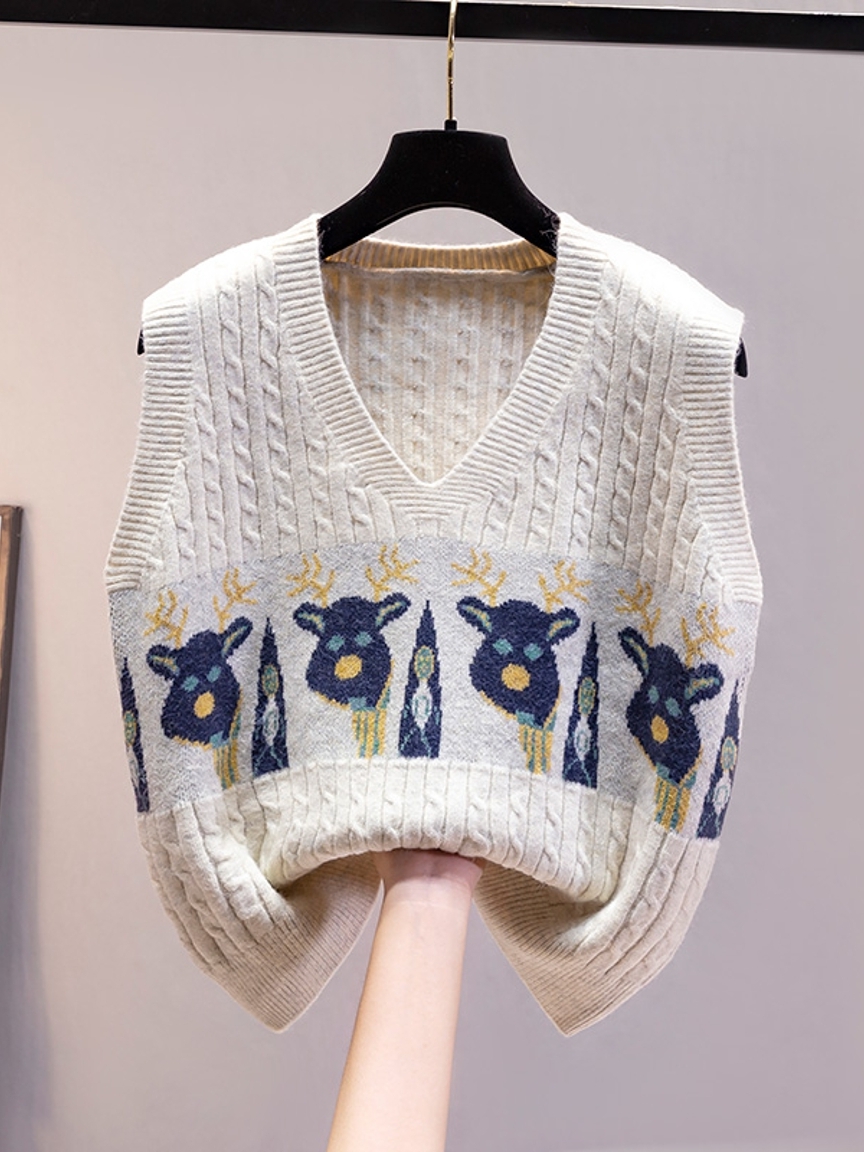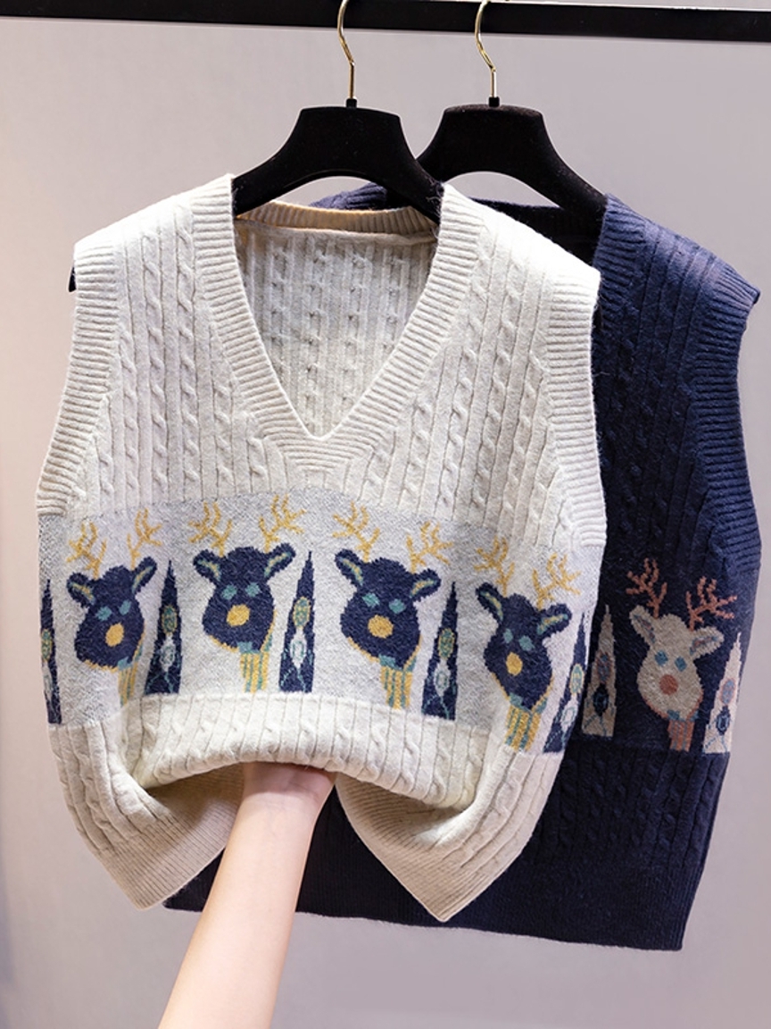 具有复古风格的这款针织背心,我最喜欢大V领设计,完美凸显颈部曲线,还能修饰脸型真的很不错呢,而时尚图案点缀,完美增加了视觉亮点~
